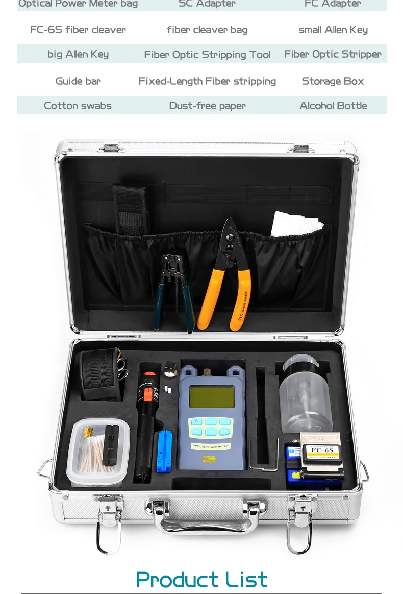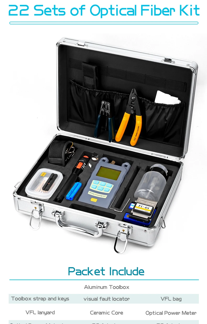 22 IN 1 Fiber Optic FTTH Tool Kit 10mW Visual Fault Locater Optical Power Meter Optic Fiber Cleaver And Stripping Tool