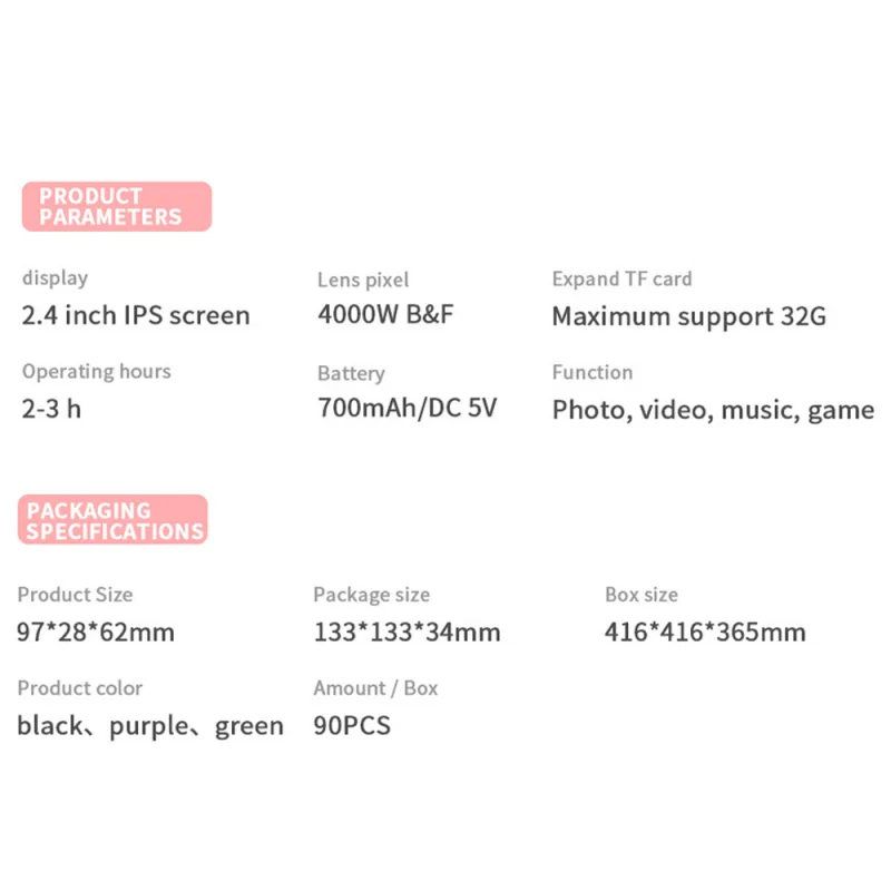 Choose Options Quick view Children Toys Camera Digital Camera Kids Projection Video Camera Outdoor Photography 32GB Gift For Kids Camera Set $10.45 - $28.74