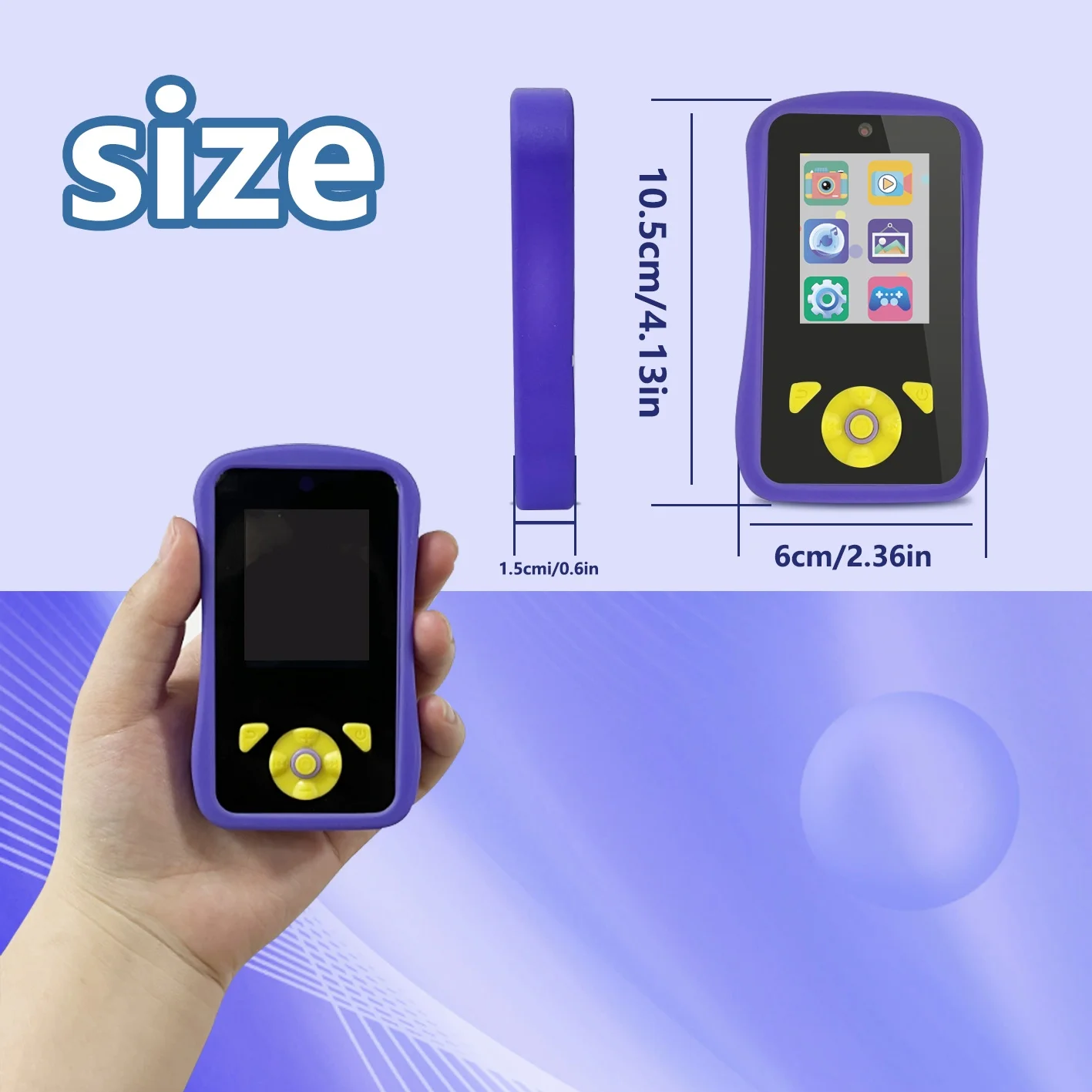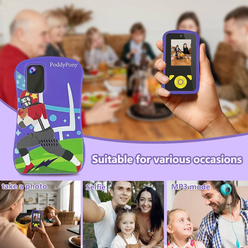 This children's camera combines gaming and music entertainment functions, perfect for children aged 3 to 12 years old.