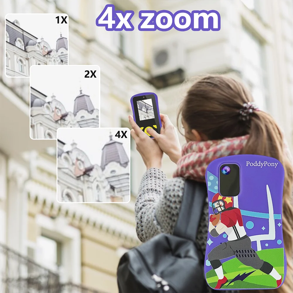 Supports 4X digital zoom, which allows for finer and more perfect distant scenery, and enables children to see more beautiful views.