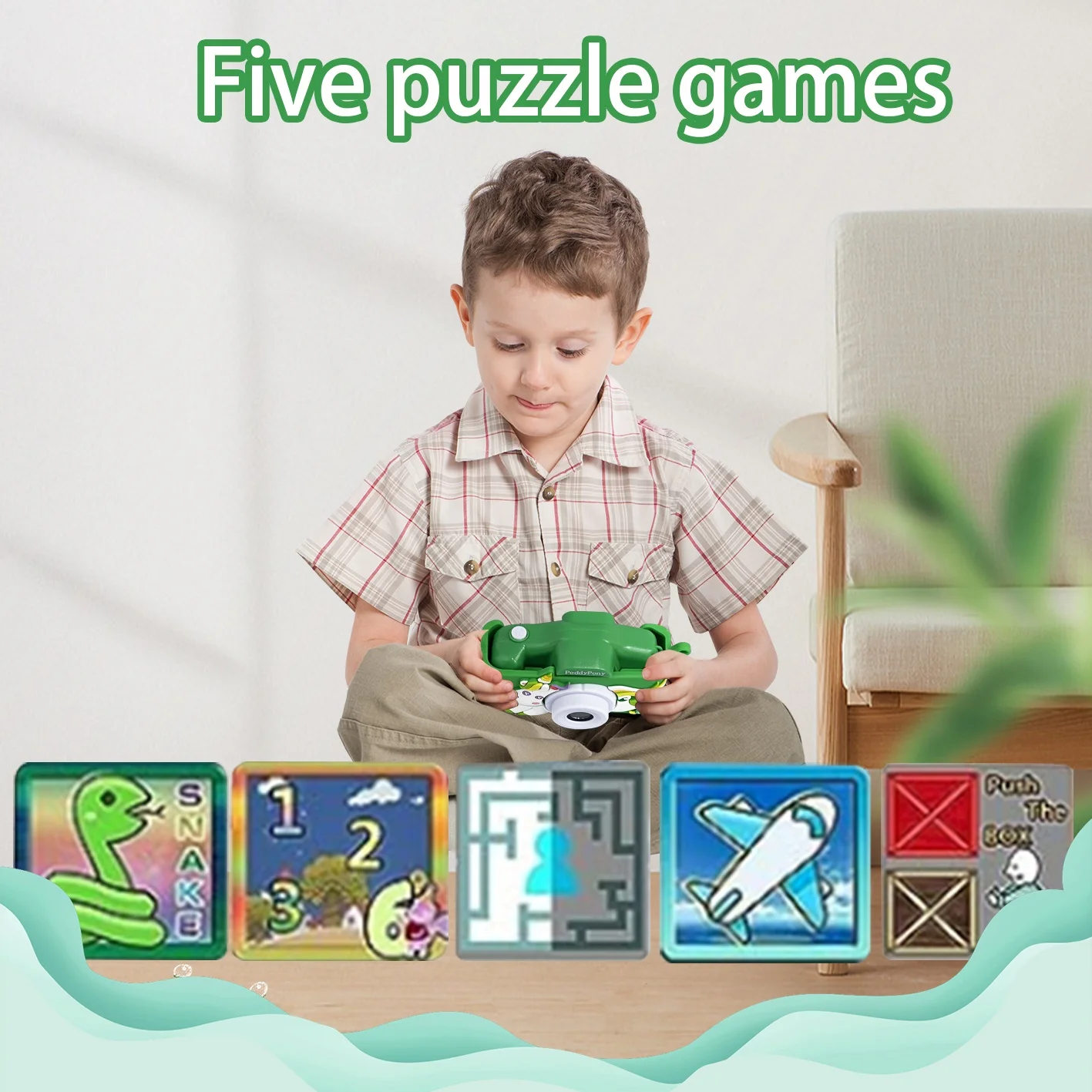 The toddler camera is equipped with five classic games, which allows kids to play and exercise