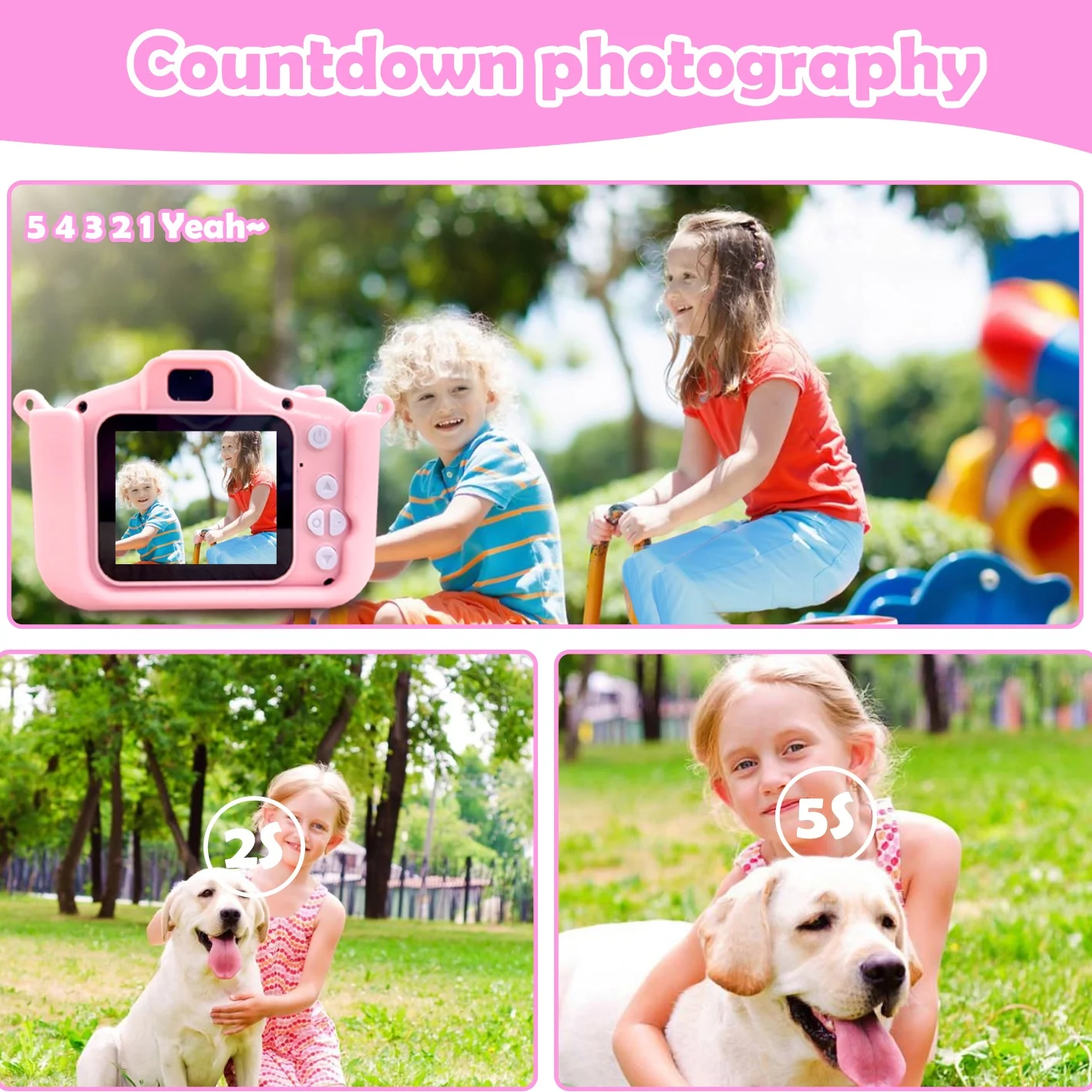 4X digital zoom in, time-lapse shooting and auto focus function make it easy for kids to take