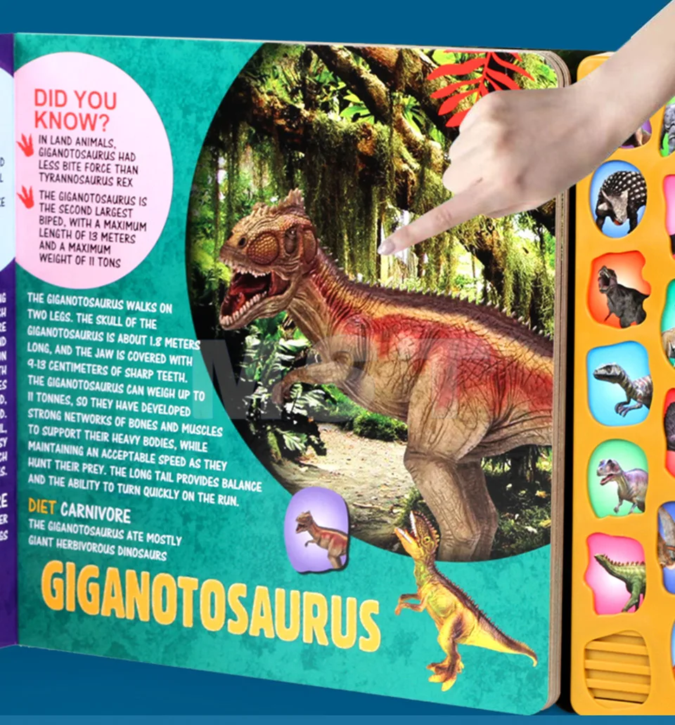 1.There are 12 dinosaurs featured in the book with a unique sound for each. Learn the exact rumbling sounds of each dinosaur.