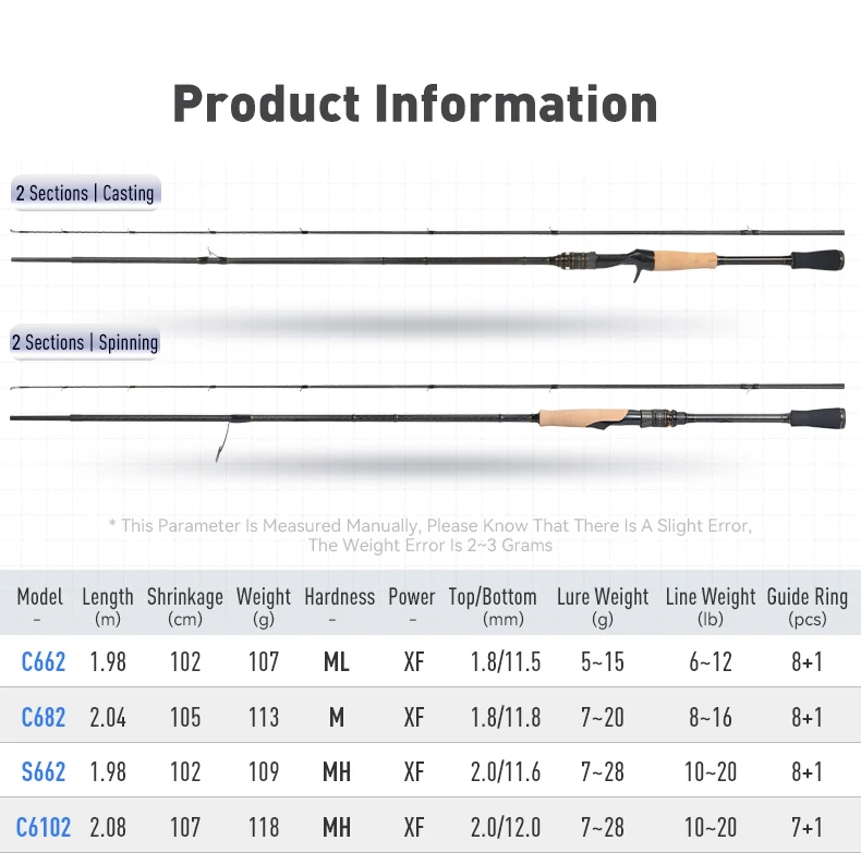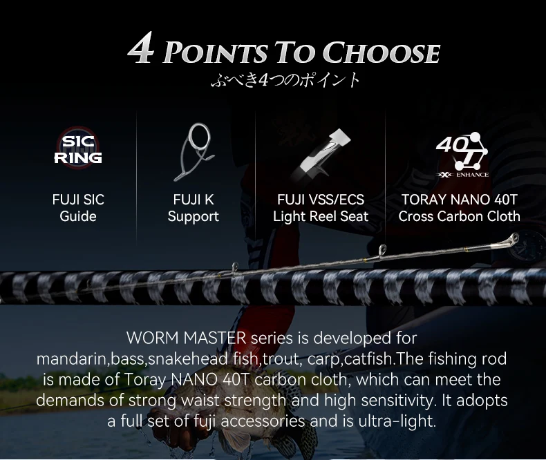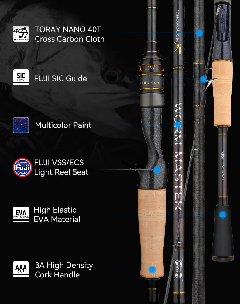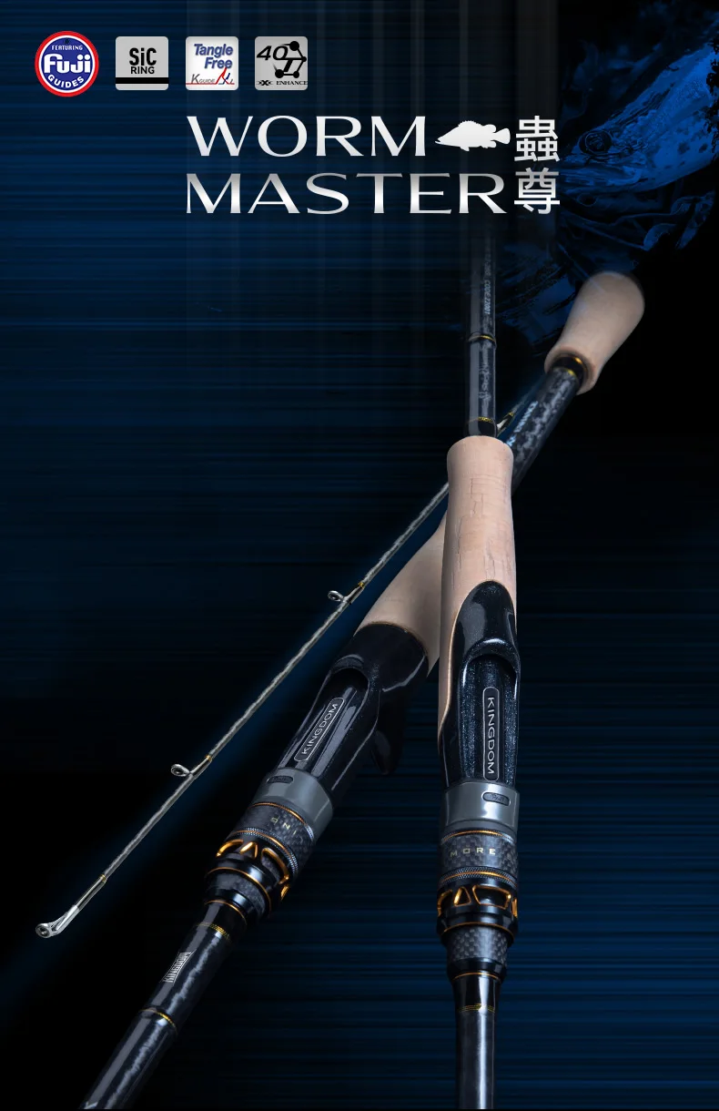 Kingdom WORM MASTER Fishing Rod 1.98M 2.04M 2.08M 2 Sections FUJI SIC Guide Ring VSS/ECS Reel Seat Wooden Handle Baitcasting Rod