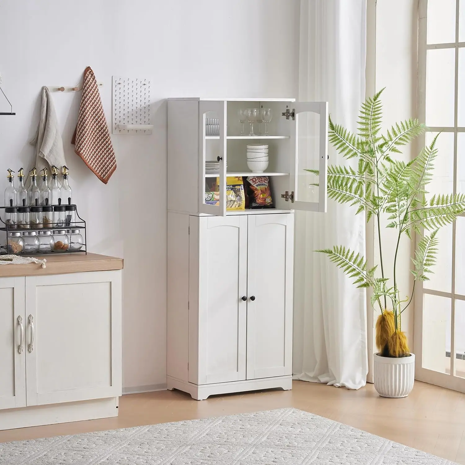 - 【Acrylic Doors】Acrylic is stronger and more durable than glass. The transparent cabinet door design on the upper part allows you to see at a glance. The white color of the pantry adds to its charm, creating a bright and airy feel in the room