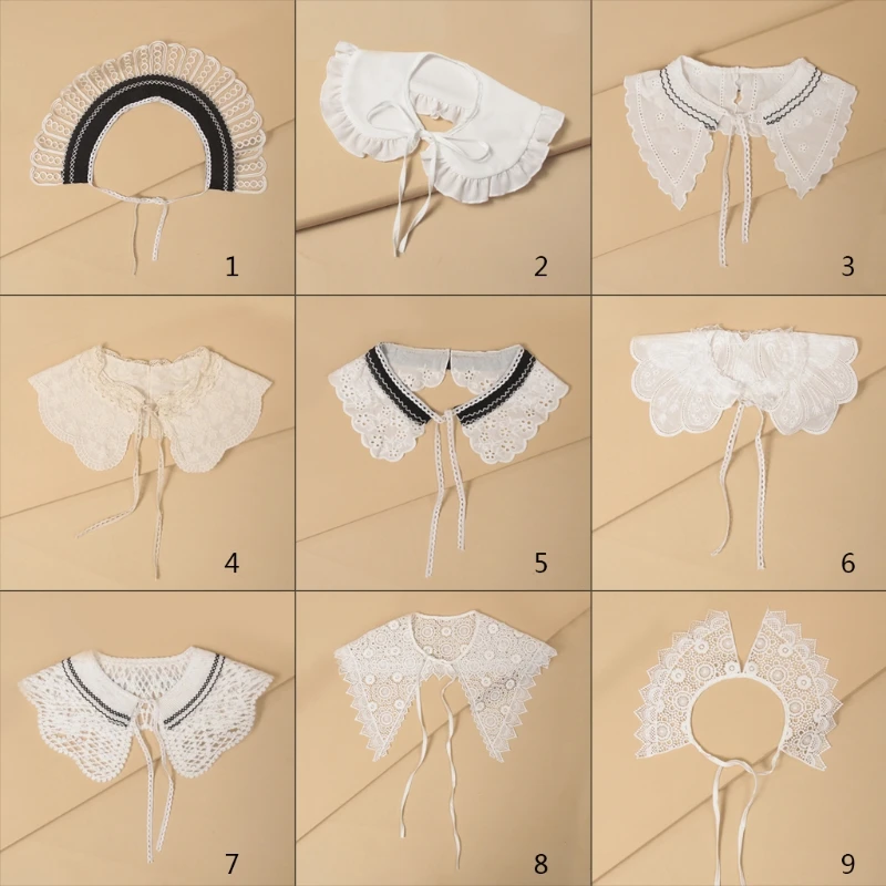 Korean Women White Cotton Fake Collar Shawl Wrap Hollow Out Floral Fish Scales Necklace Scarf Embroidery Short Poncho