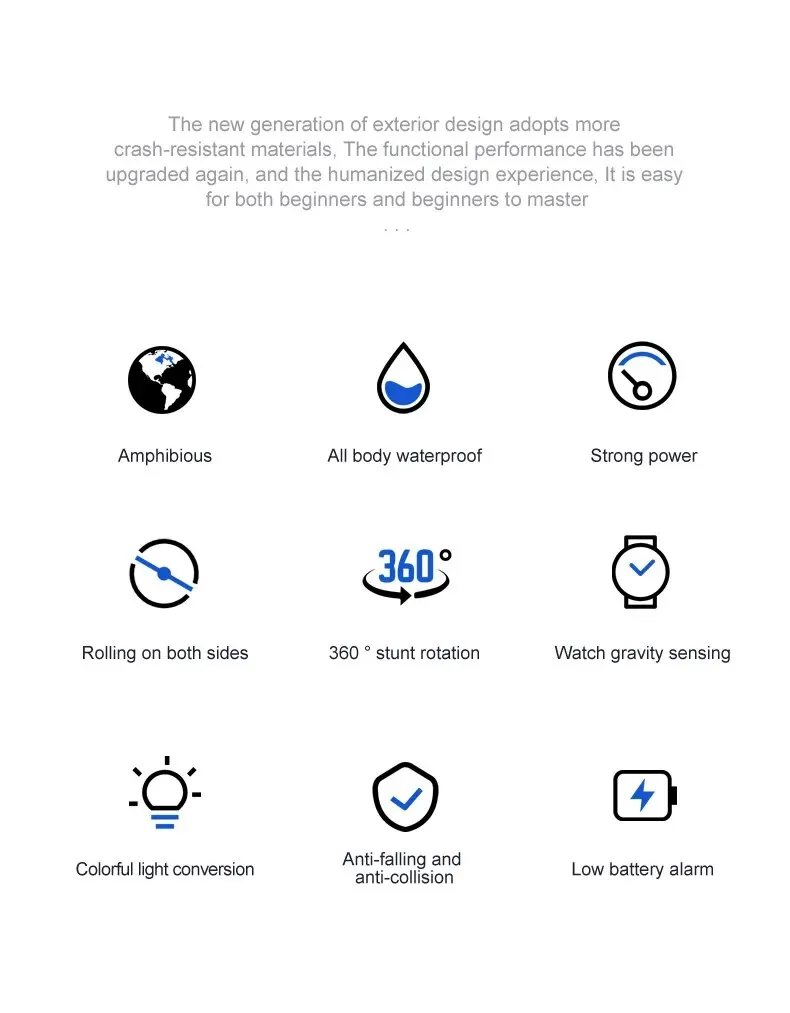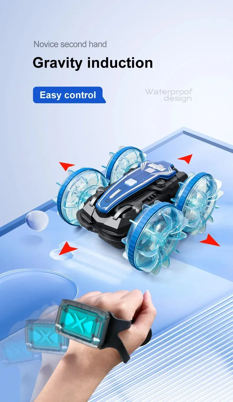 Amphibious water and terrestrial cars: The waterproof material consumed by amphibious long -distance cars allows the car to hang water on the water. RC cars, remote controller and gesture control bracelets can be completely drowned without damage, and the control of the car will not be affected.