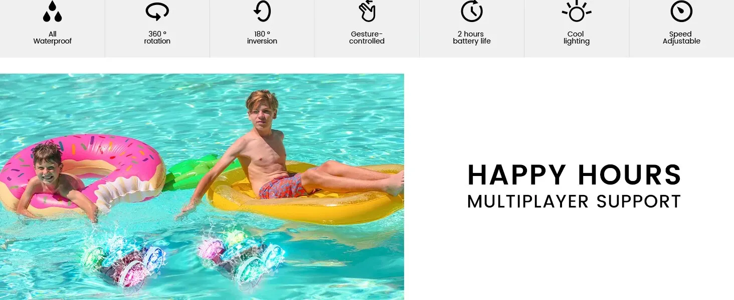 2.4GHz & 4WD RC car: This water remote control car uses the latest 2.4GHz anti -interference technology. You can play multiple pool remote controls together without having to interfere with each other.