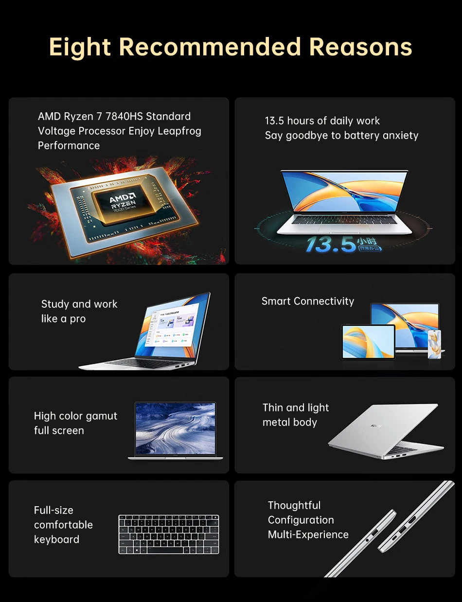 Laptop Honor MagicBook X14 Pro 2023 Ryzen 7 7840HS,16GB 512GB,AMD Radeon™ 780M Notebook SSD IPS Ultrabook 14 Inch Computer PC
