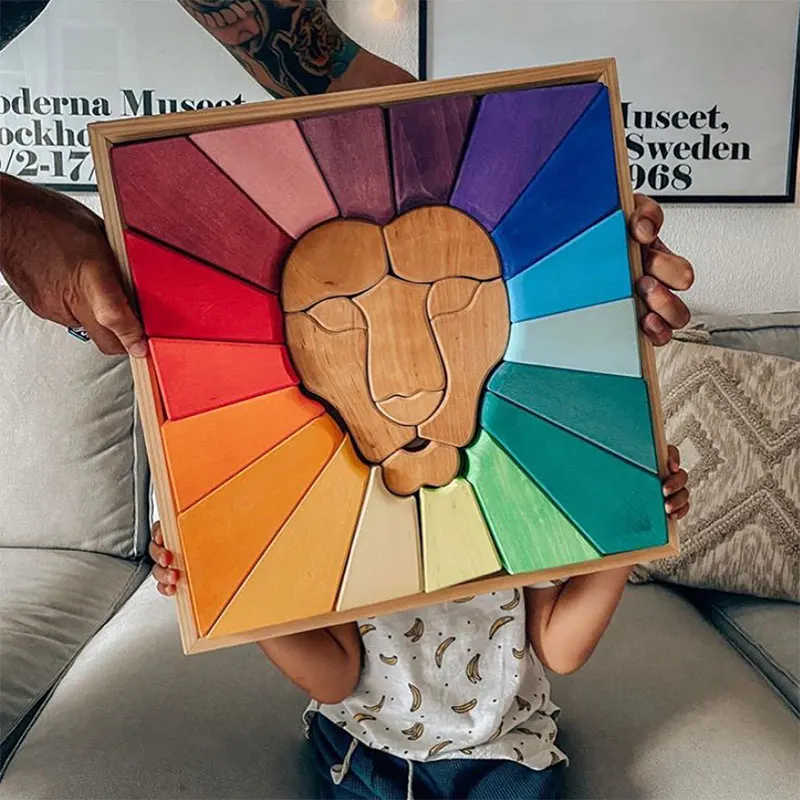 Description Description Large Rainbow Lion Wooden Puzzle Building Blocks Animal Stacking Toys Kids Open Ended Montessori Educational Toys for Children View AllClose
