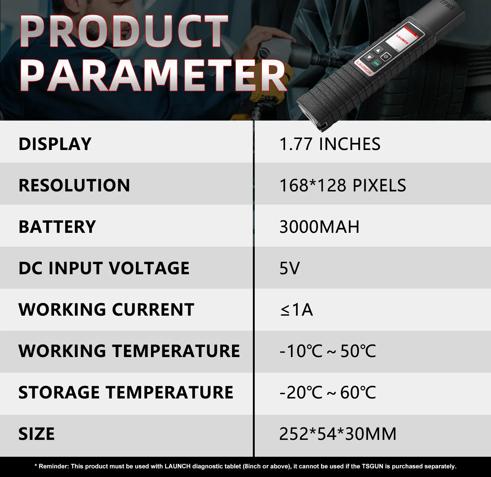 The X-431 TSGUN tire pressure gun is portable, powerful and easy to operate. It needs to work with LAUNCH intelligent diagnostic tool to perform the tire pressure activation, programming, diagnosis and learning functions.