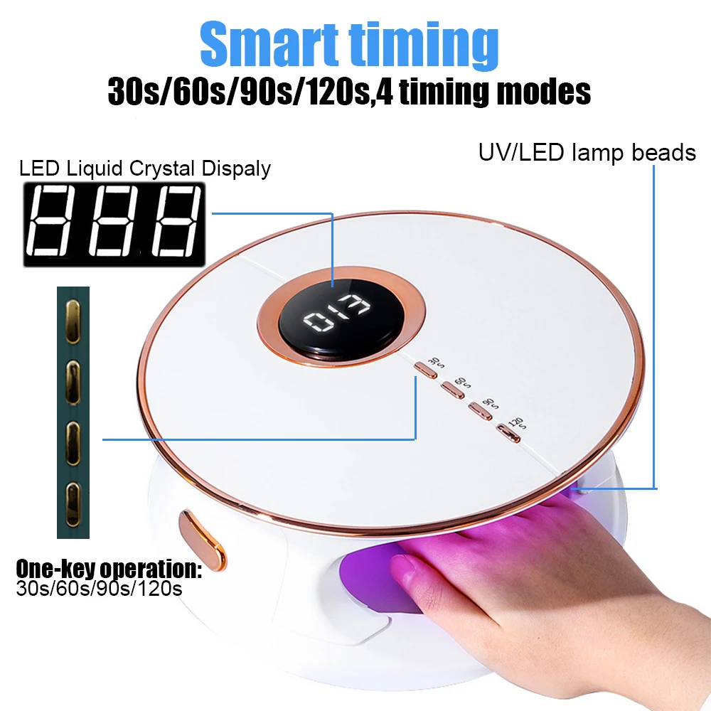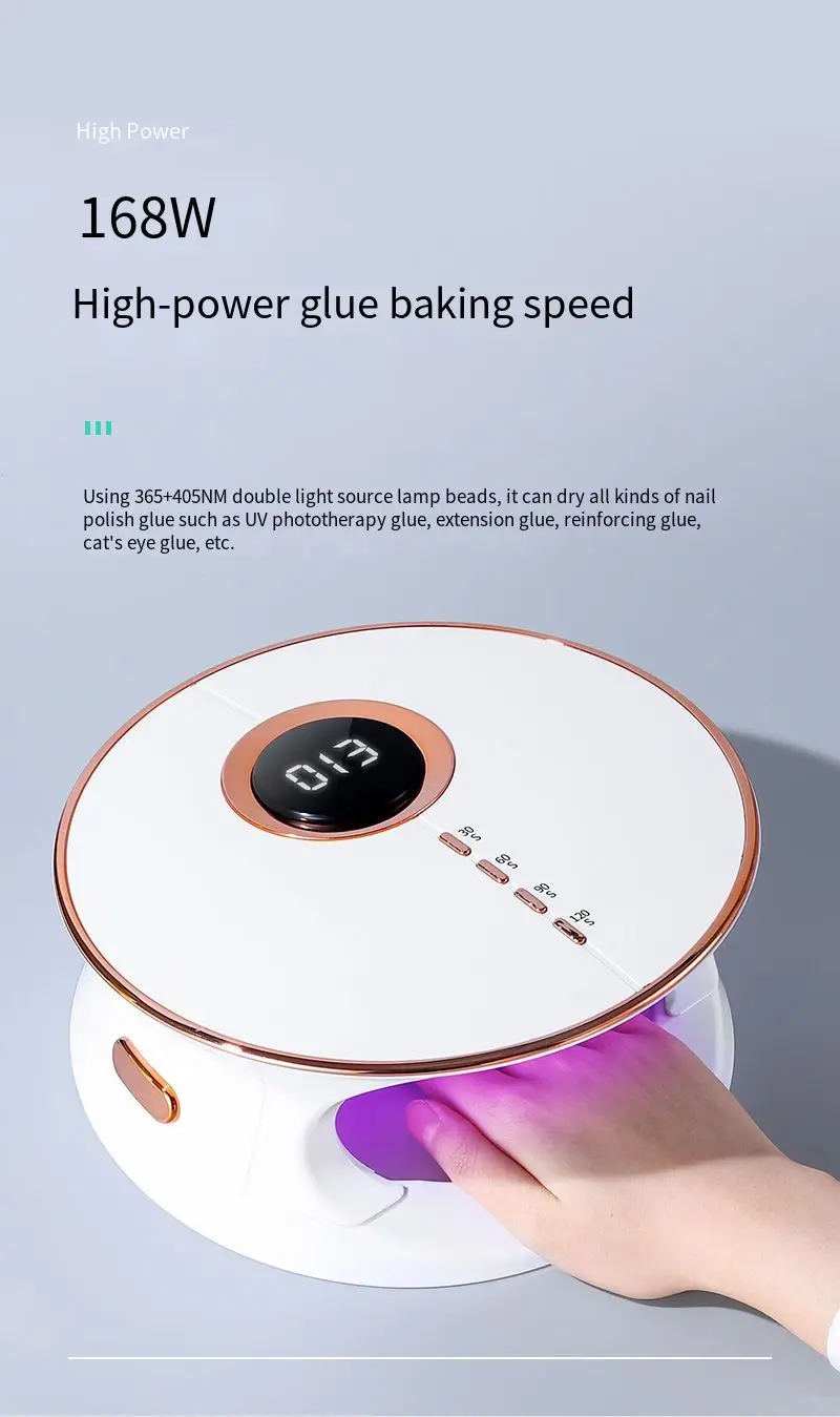 ❤【Large space】LCD/sunlight/UV/LED/LCD digital display/168W/intelligent induction/heating hole/high power/fast drying/drying nail polish glue/large space/hand and foot dual-use/