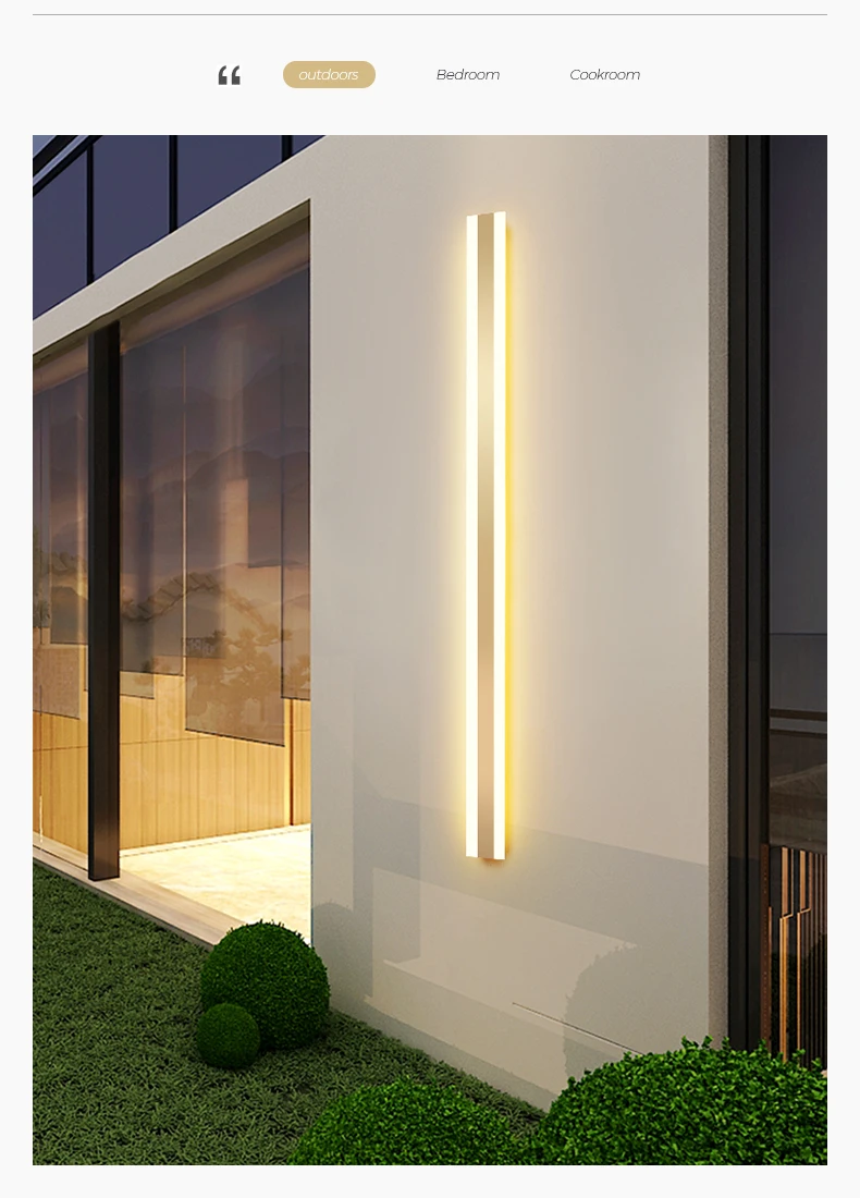 LED Outdoor Wall Light Long Wall Light Modern Waterproof IP65 Porch Garden Balcony Gold Wall Lamp terrace Decoration Lighting