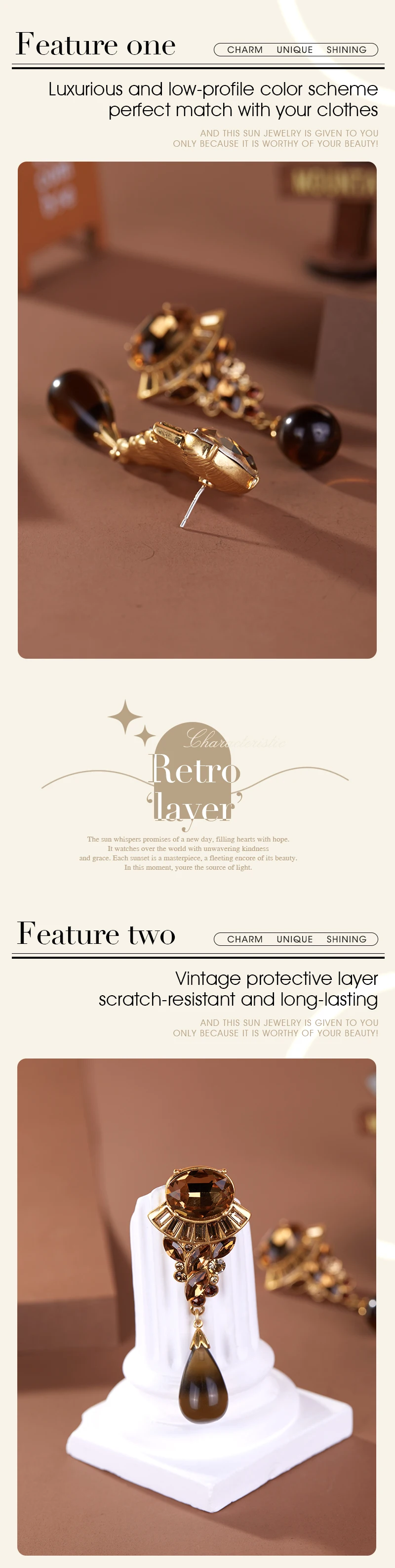 • LEWIS SEGAL Luxury Medieval Style Large Topaz Glass Stone Dangling Teardrops Earrings Fine Jewelry 18K Gold Plated
