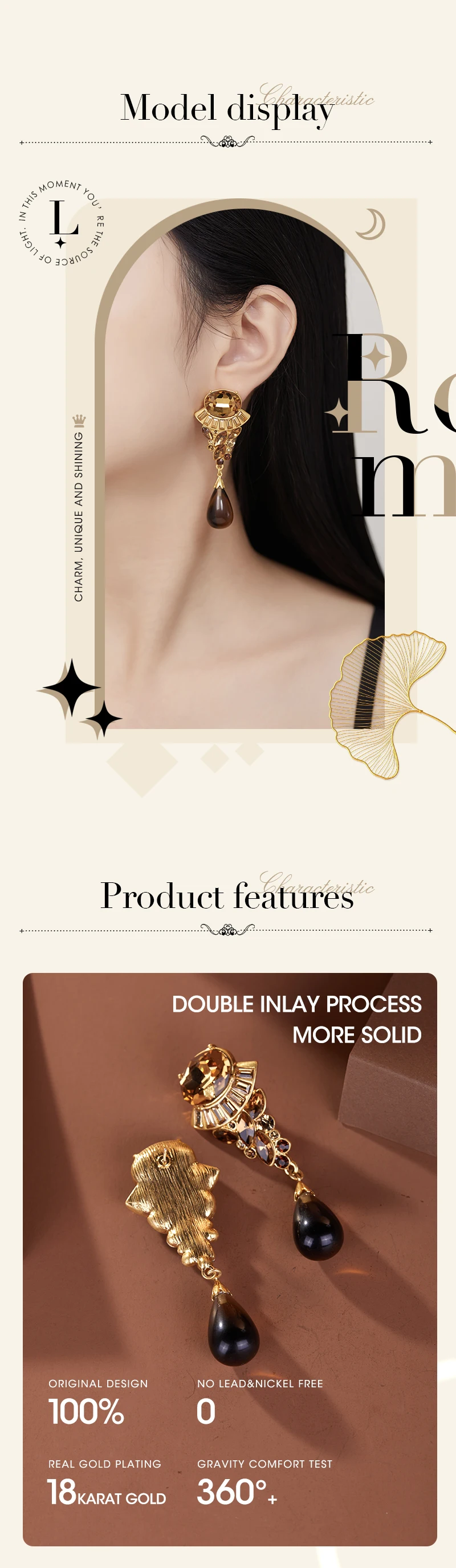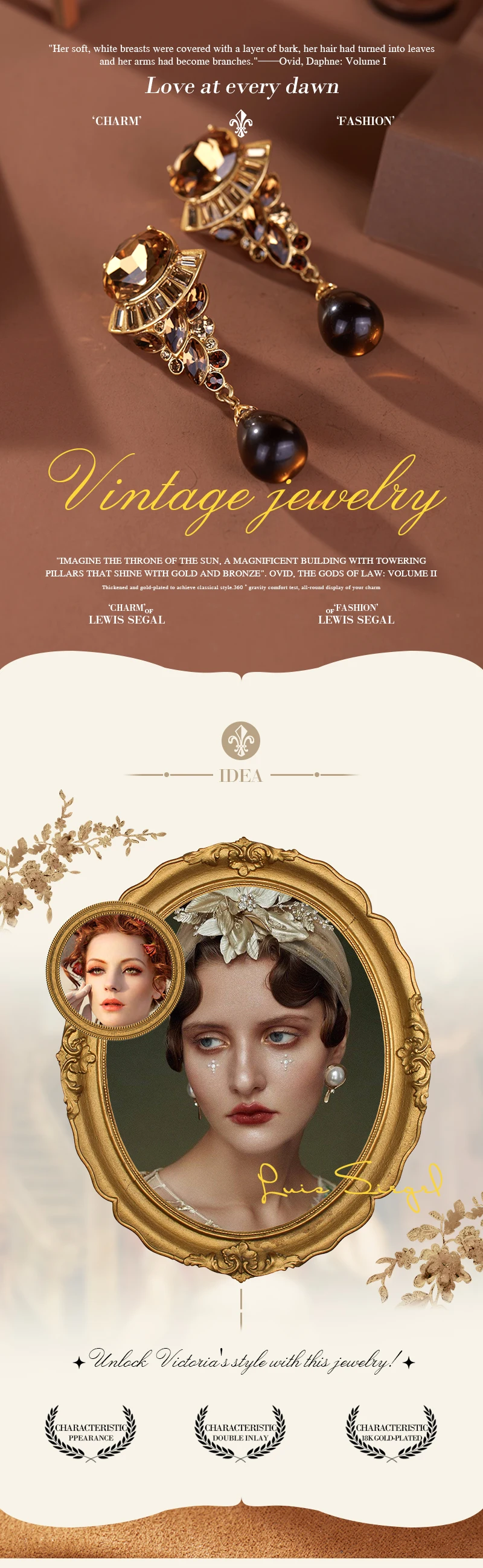 LEWIS SEGAL Luxury Medieval Style Large Topaz Glass Stone Dangling Teardrops Earrings Fine Jewelry 18K Gold Plated