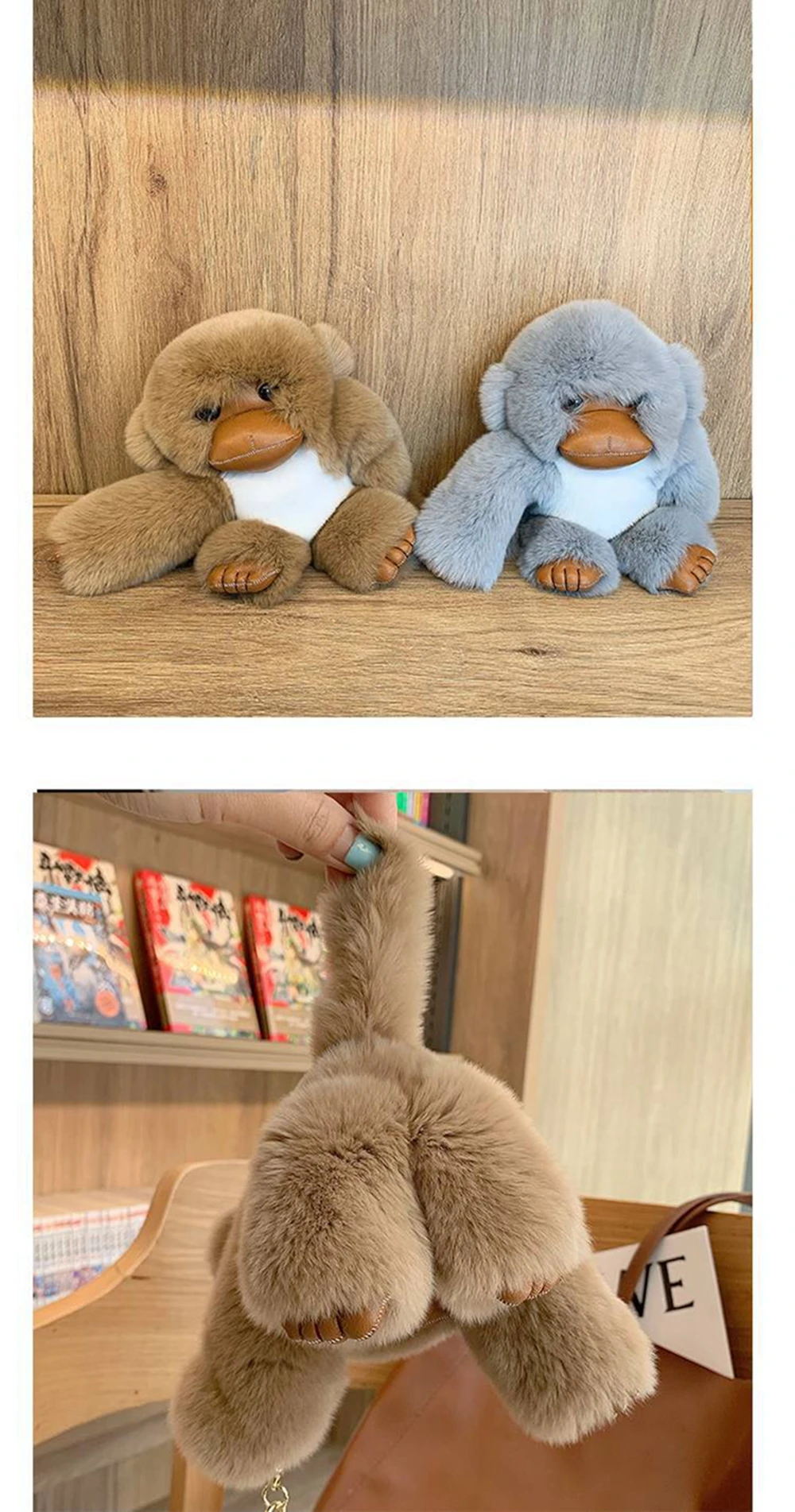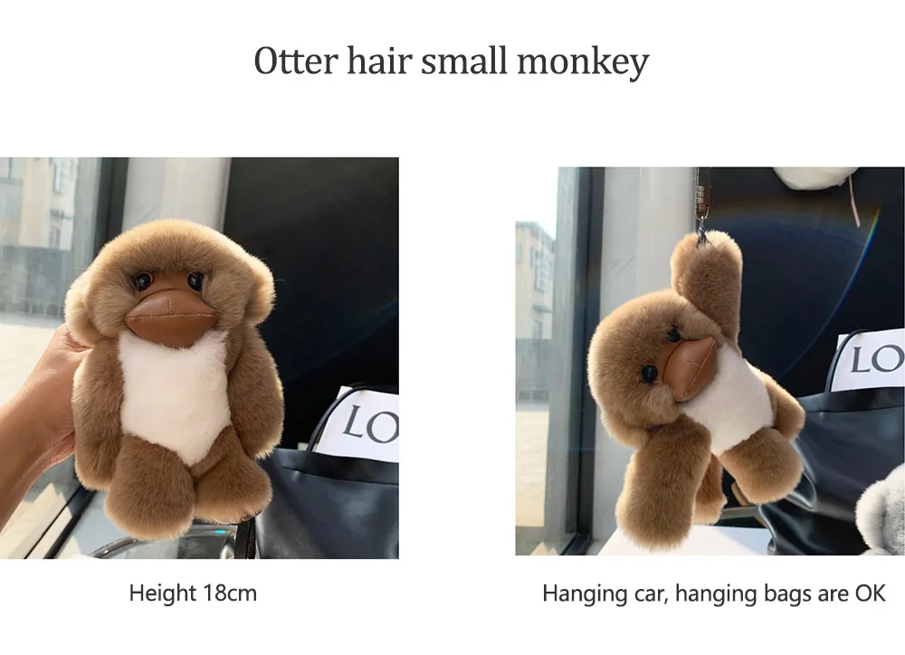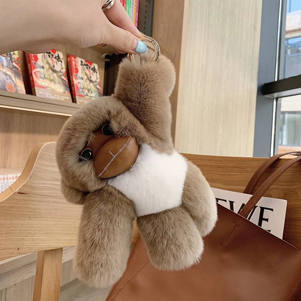 Lucky Little Monkey Cute Rex Rabbit Hair Long Arm Monkey Car Keychain Pendant Cute Plush Doll Bookbag Pendant Gift