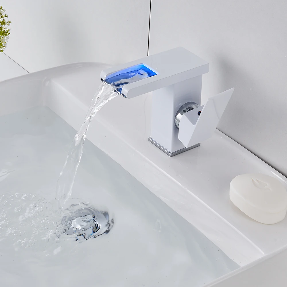 Choose Options Quick view LED Bathroom Basin Faucet Waterfall Outlet Black Cold And Hot Mixer Deck Installation Crane Kitchen Sink Tap With Light $337.04 - $504.03 Produt Function Introduction