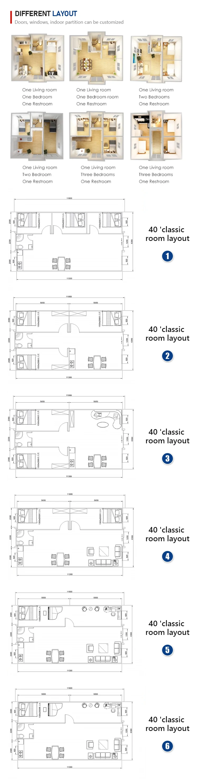 20ft,40ft,etc...We also had special size for 2.9M height