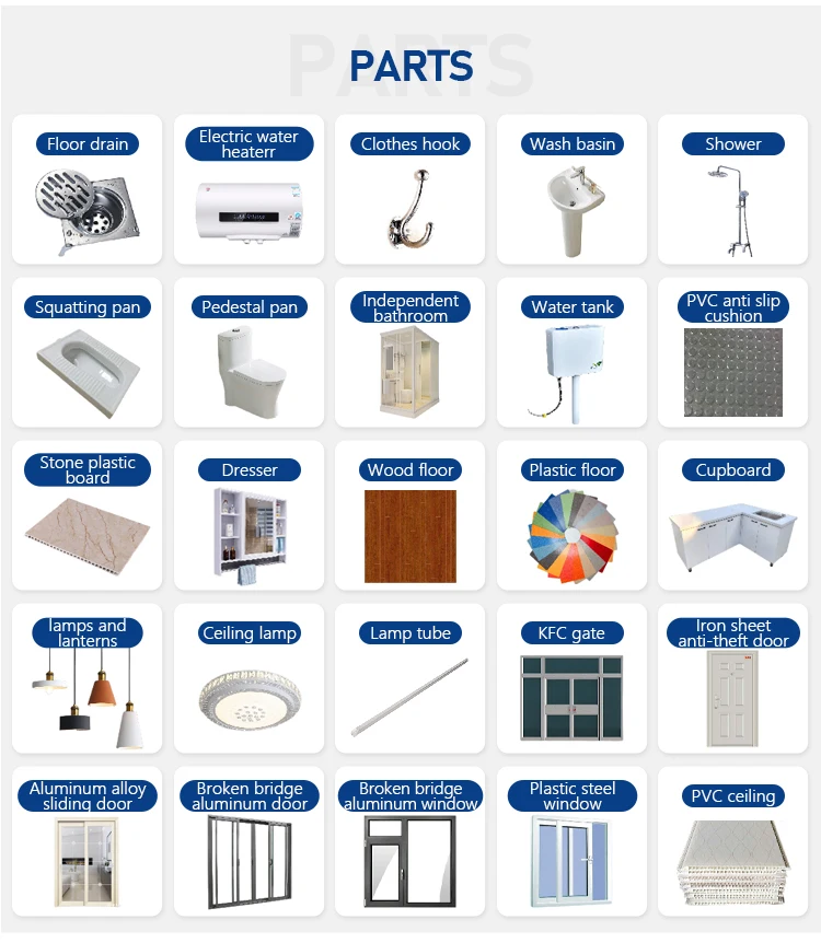 (2) Anti-rust: all material use hot glavanized steel; (3) Waterproof: without wood ceiling,wall; (4) Fireproof:Fire rating A grade (5) Simple foundation:just need 12pcs concrete bolck foundation; (6) Wind-resistant(11 level) and anti-seismic(9 grade) |