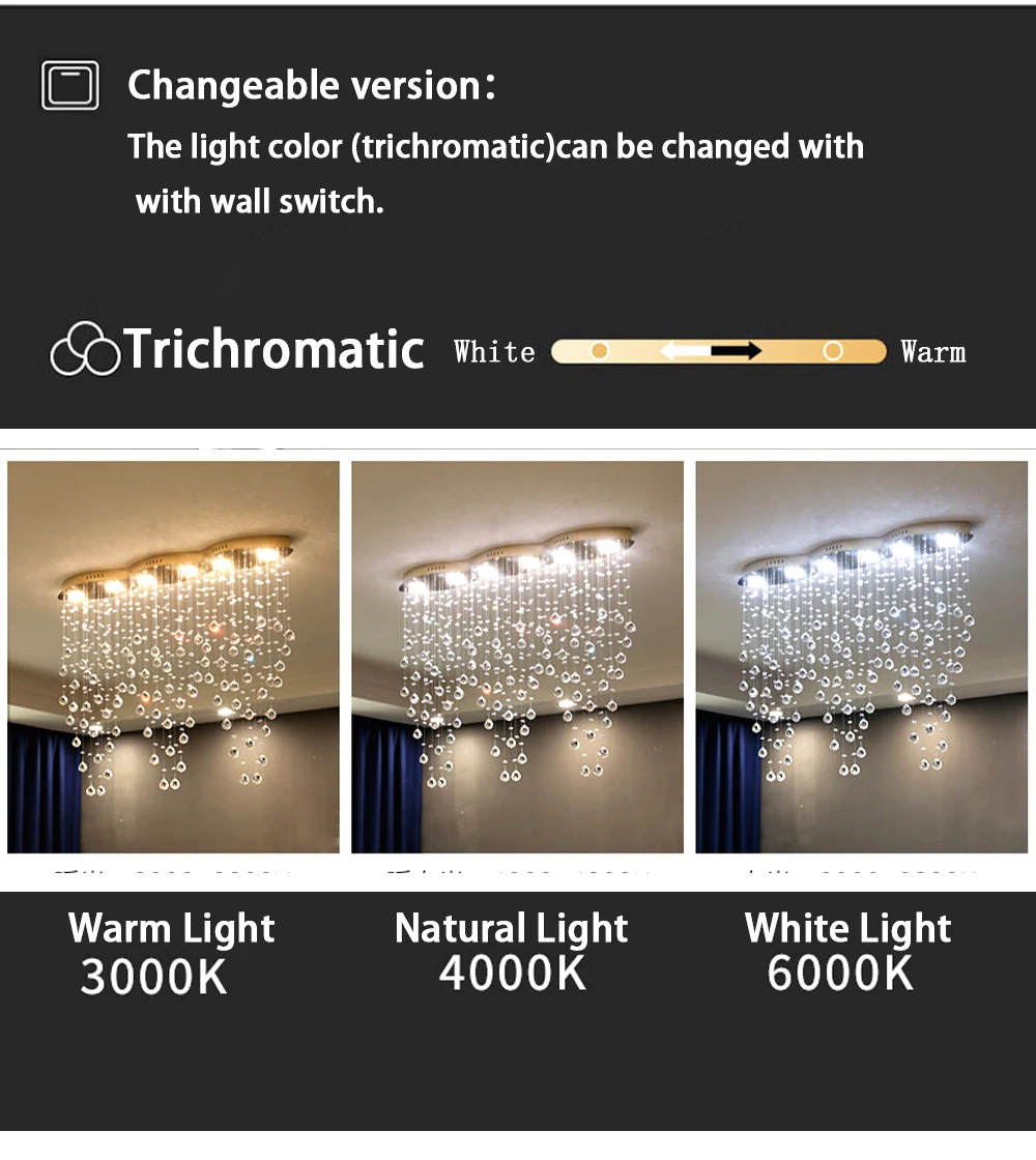 Changeable Version:The Light Color can be changed with wall switch, each time turn off and on (in short period), the light color will changed (warm light / white light / natural light).
