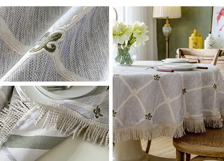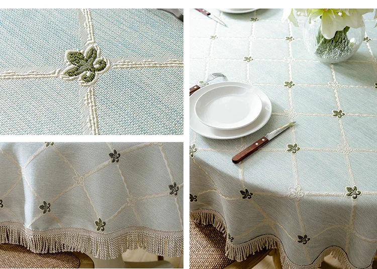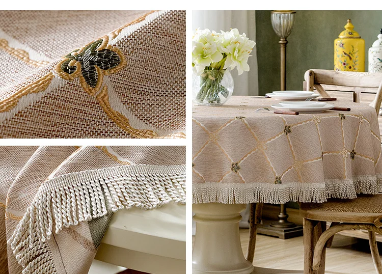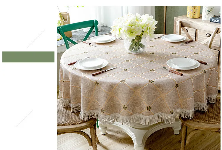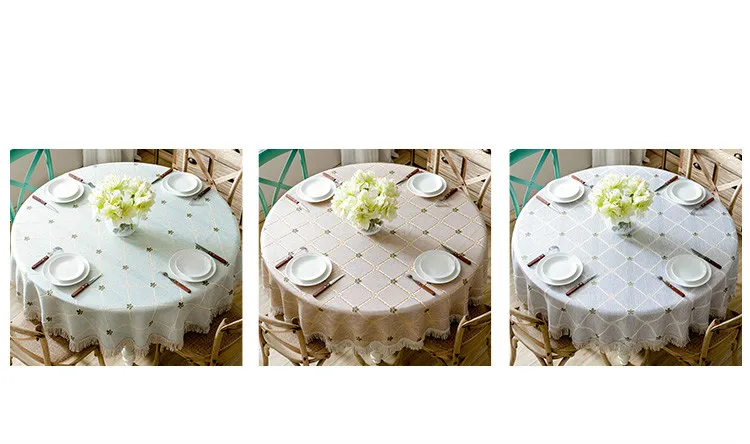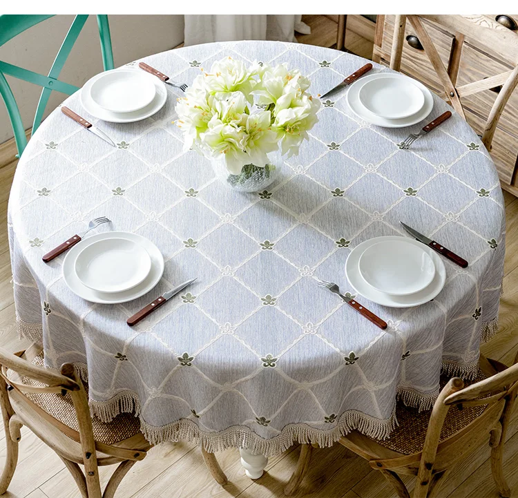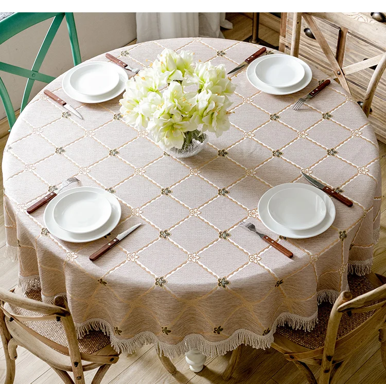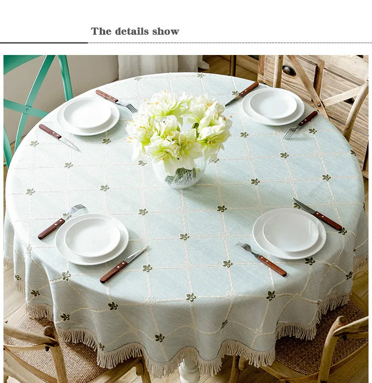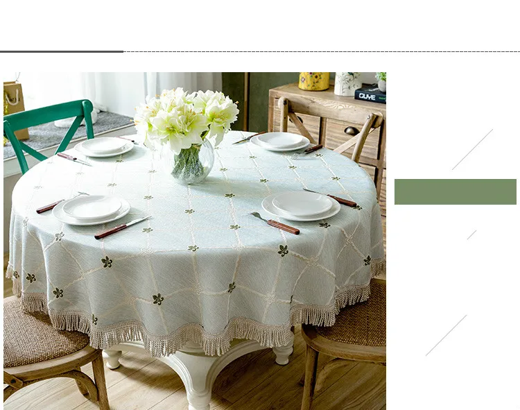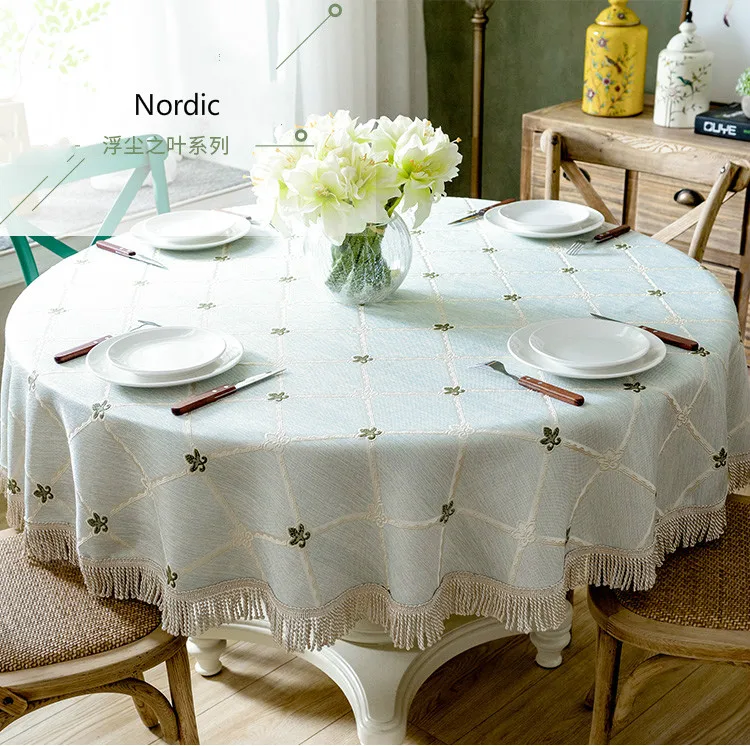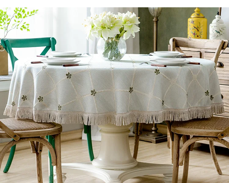 Description Description Luxury Table Cloth Round Table Cover Leaves Embroidered Wedding Party Home Tablecloth Cotton Linen Tablecloths with Tassel View AllClose