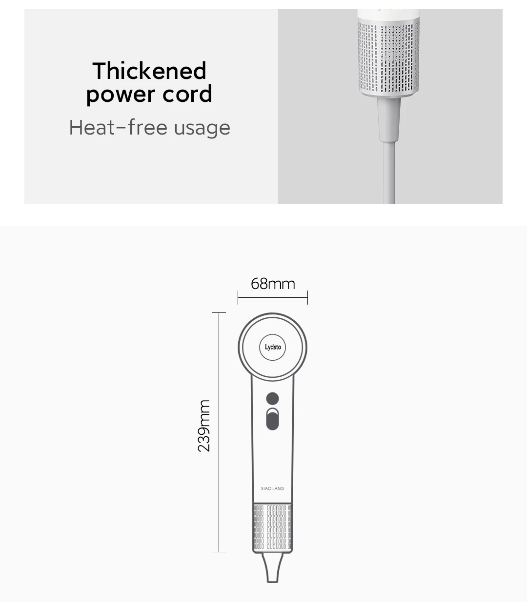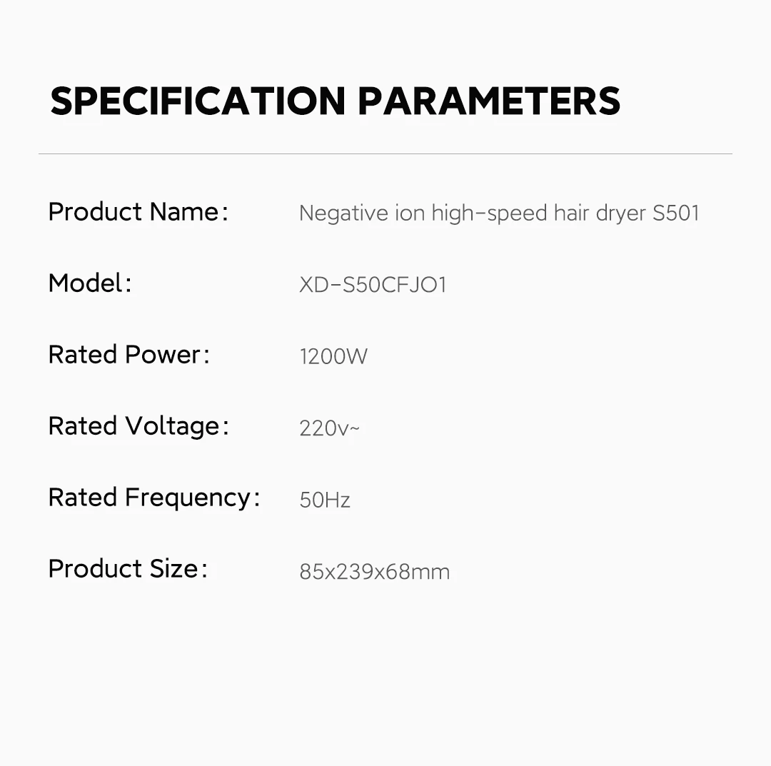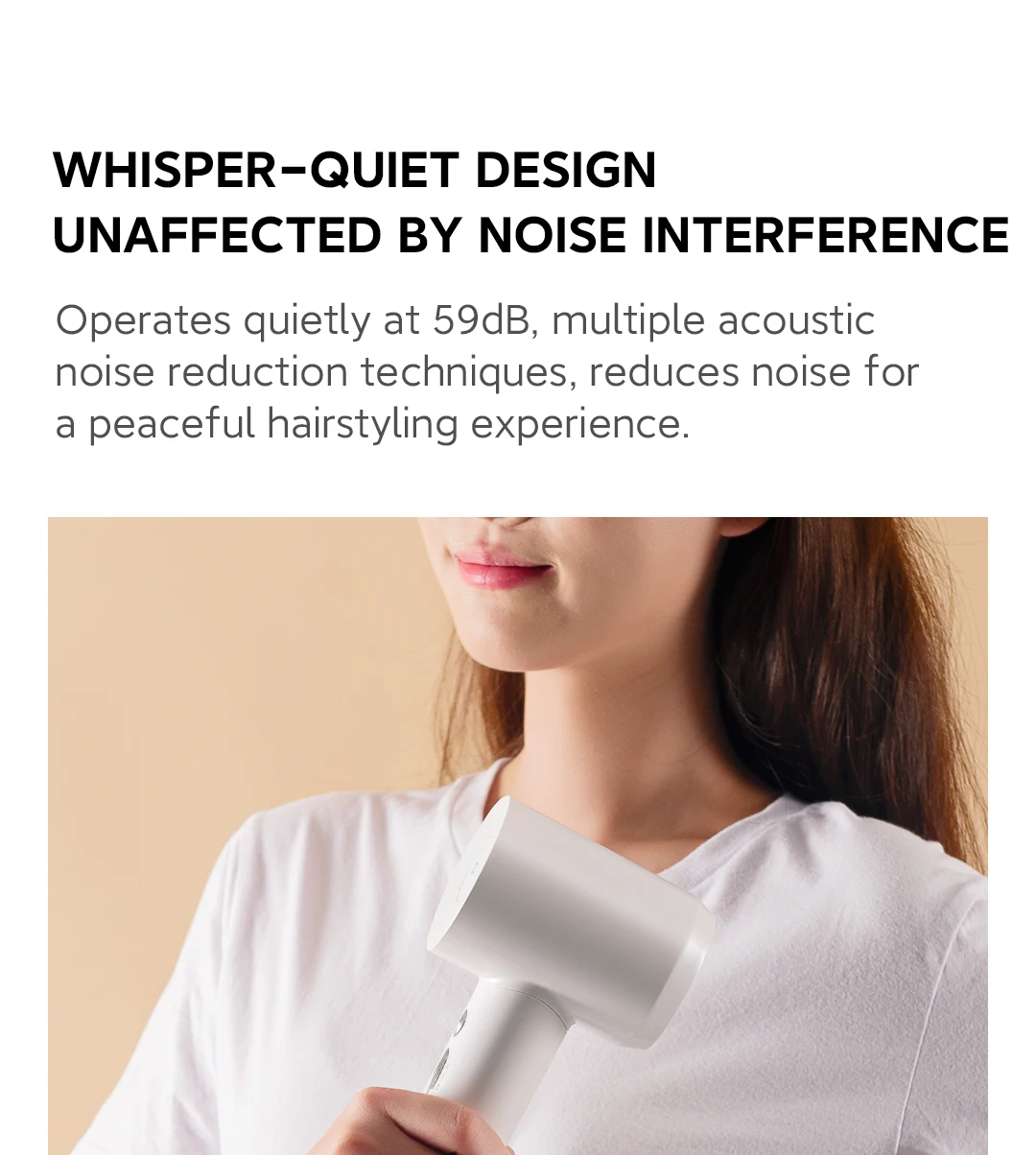 NTC intelligent temperature sensor detection, 100 cycles/second cycle temperature detection, anti-overheating damage hair 59dB soft operation