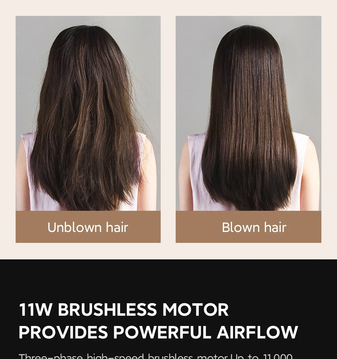BLDC high-speed motor, 13 aerospace-grade impellers, bring strong wind, quickly dry 11w turn brushless motor