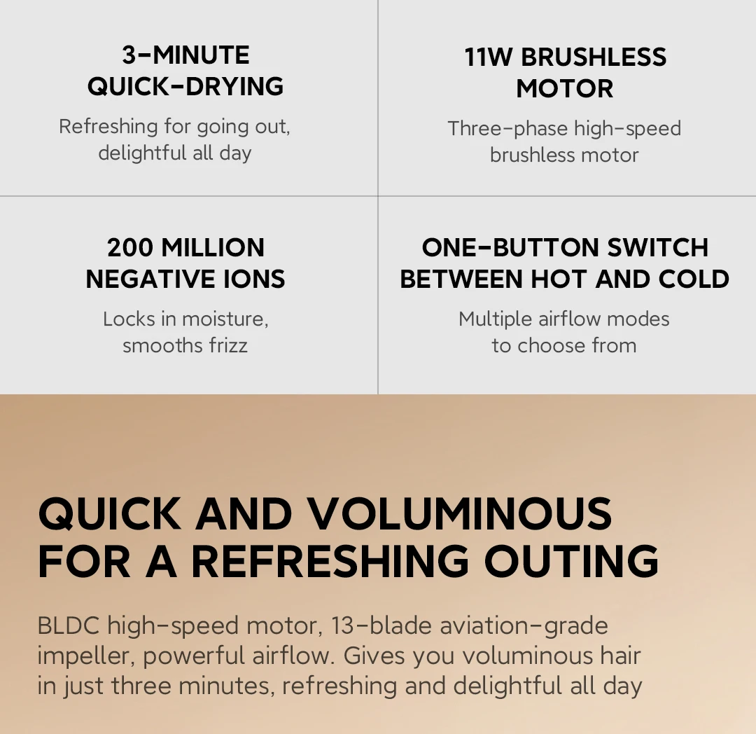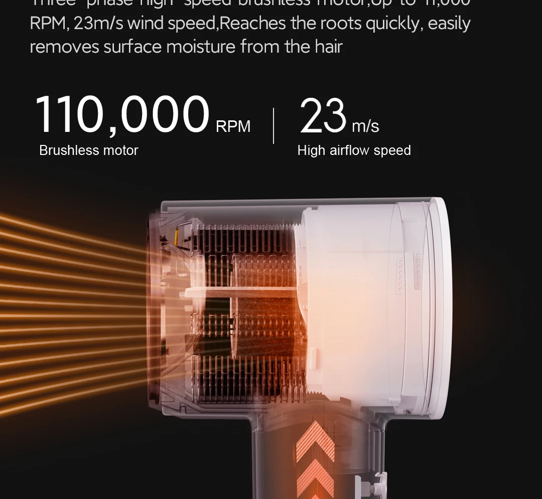 Ultra-atmospheric flow, fast and direct to the hair roots, taking away the moisture on the surface of the hair