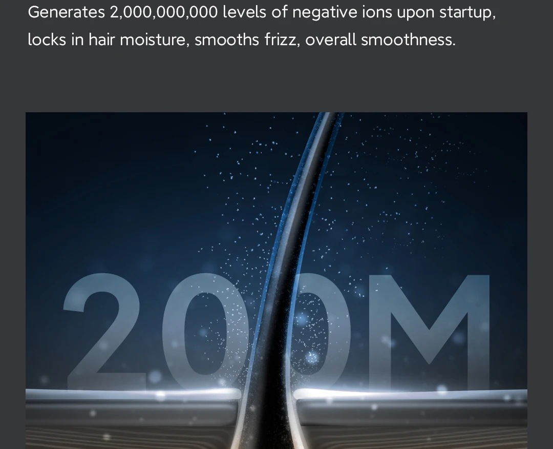 It produces 200 million negative ions at startup, locking in hair moisture, smoothing frizz and overall suppleness