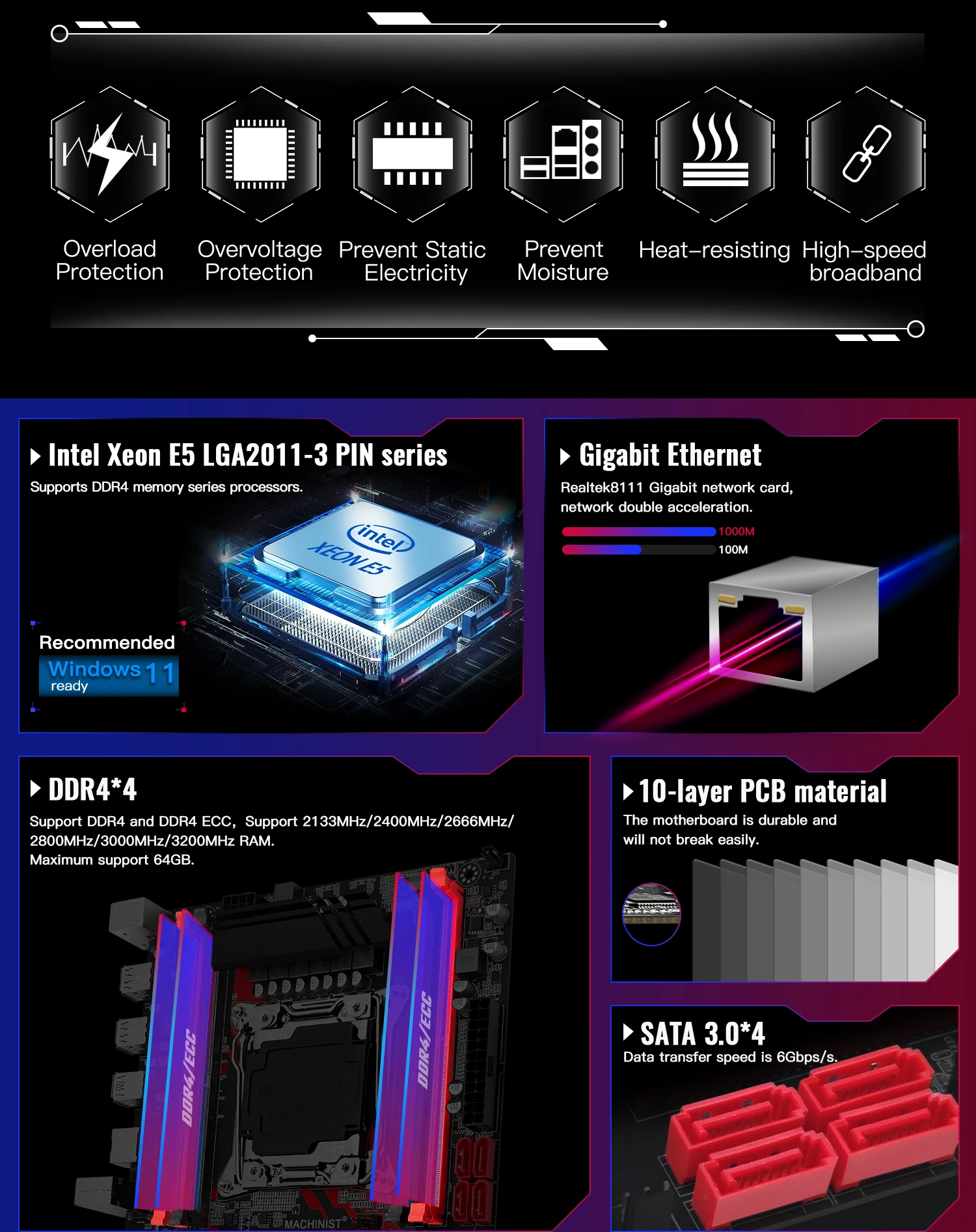 Processor: Support Intel LGA2011-3 pin series processor;