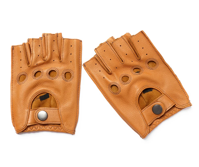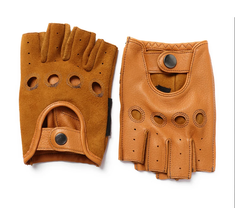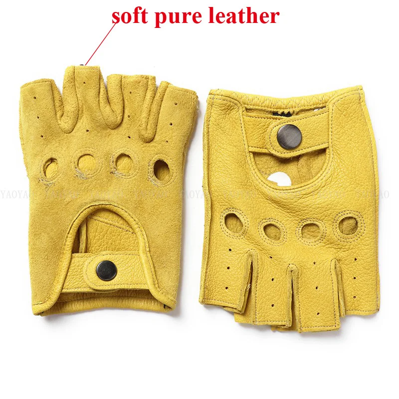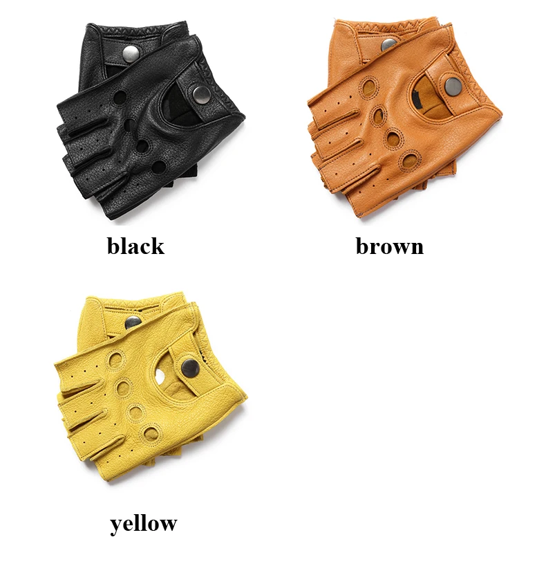 Male100% Genuine Leather Half Finger Short Gloves Men