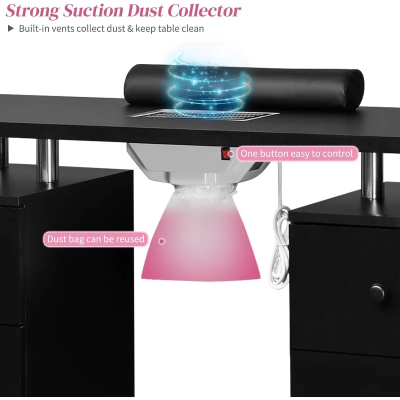 - 【STRONG ELECTRIC DUST COLLECTOR】-Built-in powerful and efficient electric dust collector. One-button start and detachable dust bag can easily remove and collect nail shavings and dust generated during the manicure. To keep your desktop clean and provide a hygienic environment for you and your customers.