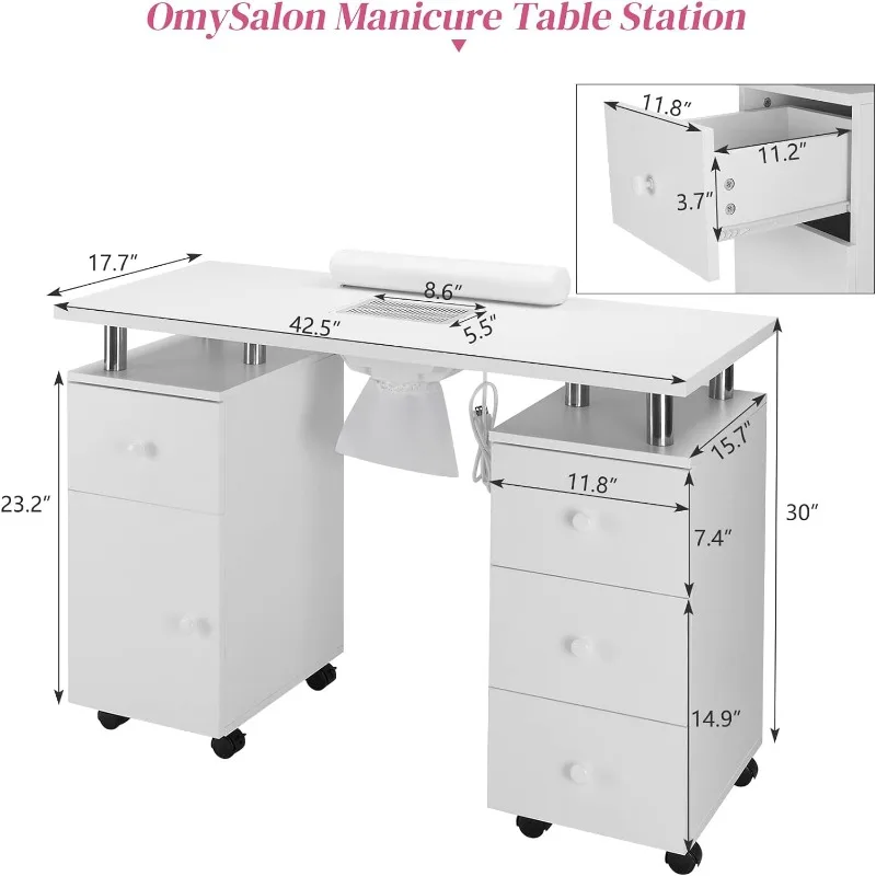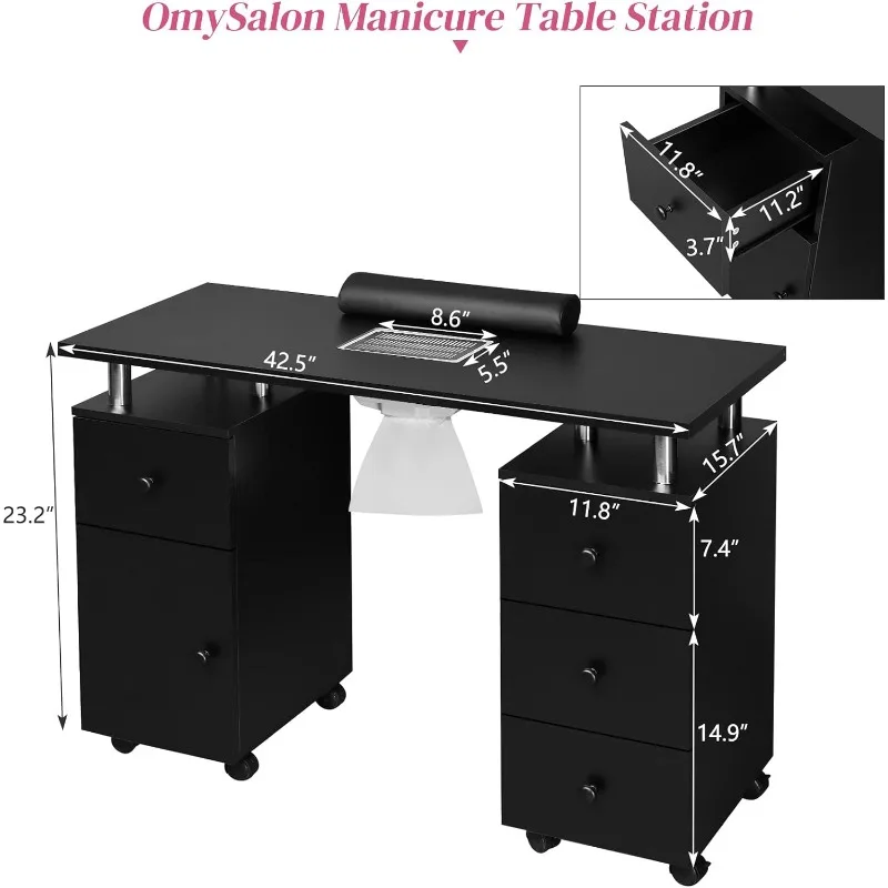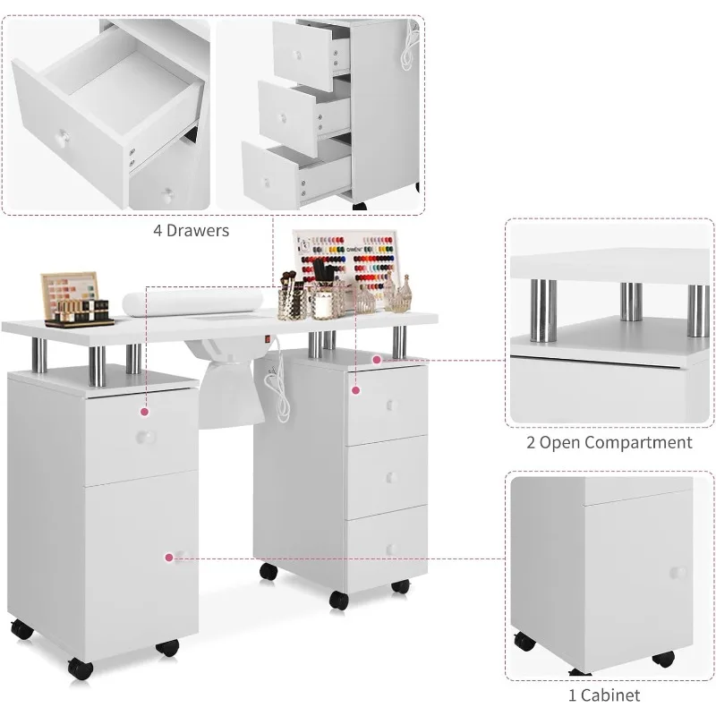 - 【LARGE STORAGE SPACE】-The professional manicure table is designed with 2 open spaces, 4 drawers and 1 large capacity side cabinet. It is spacious enough for professional manicurists to place various manicure tools.It can meet the storage requirements of various sizes without worrying about storage.
