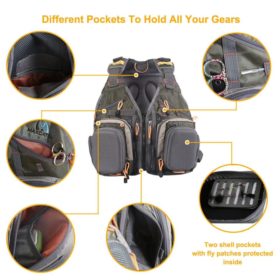 Maximumcatch V-SBS Adjustable Fly Fishing Vest With Multifunction Pockets for Outdoor Sport Fishing Bag Fishing Backpack