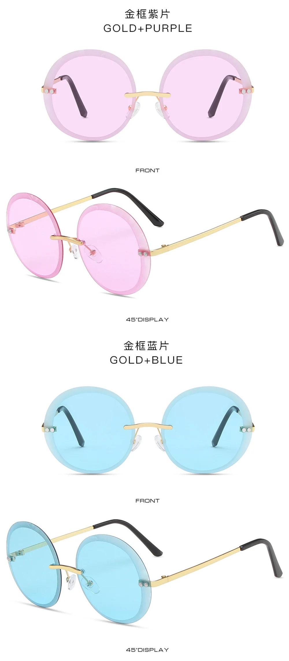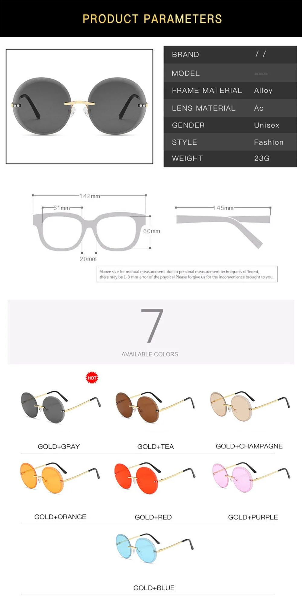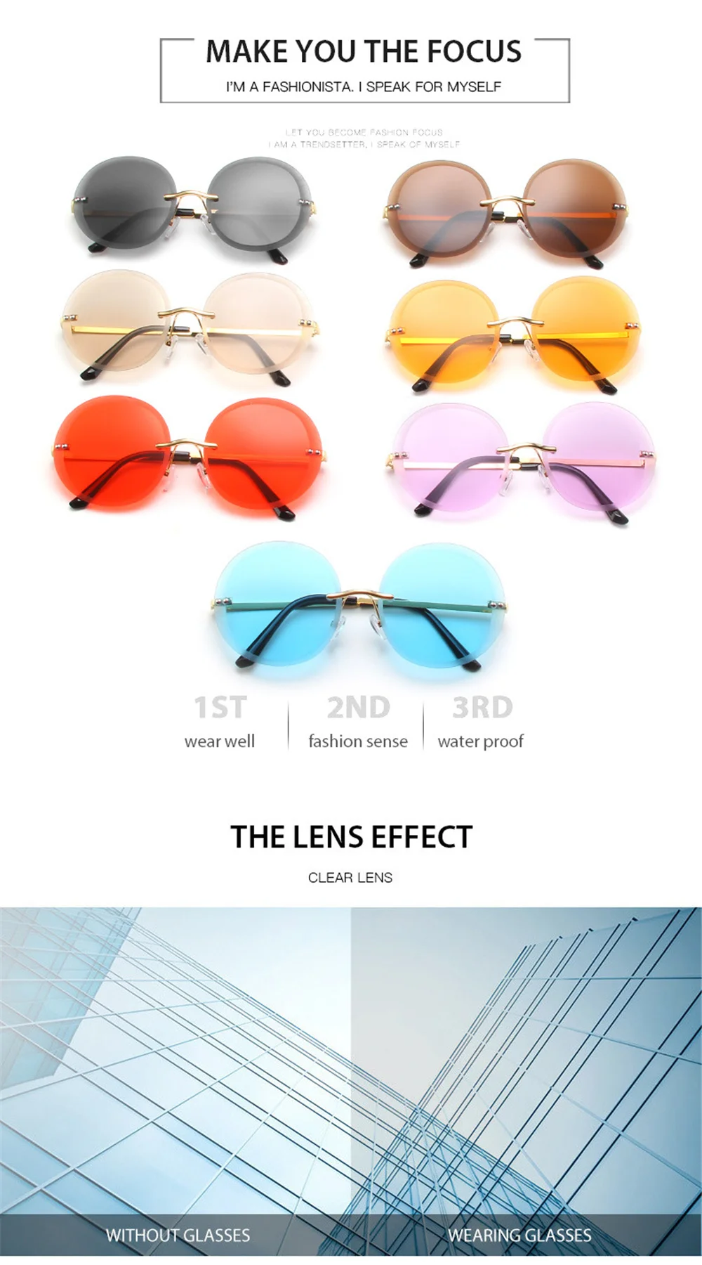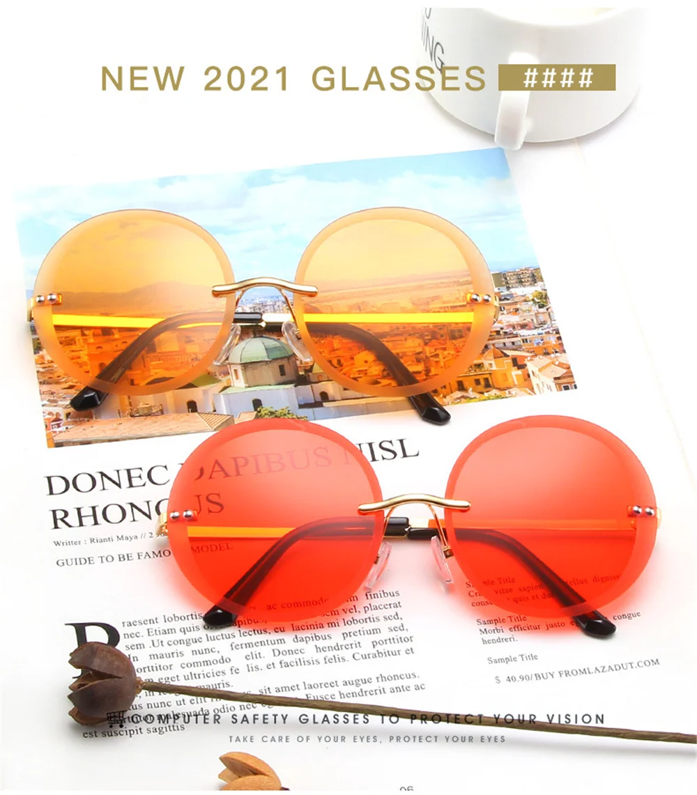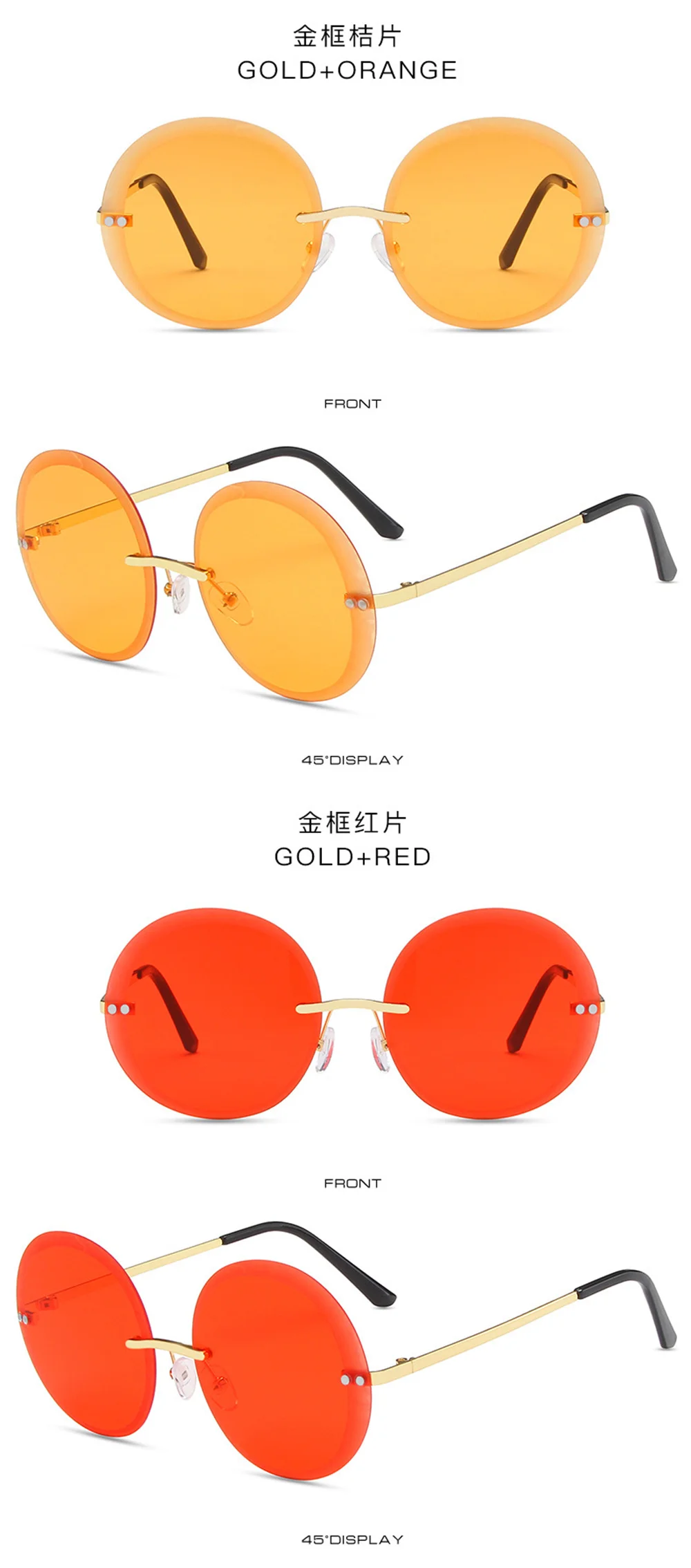 • MAYTEN Vintage Retro Rimless Round Women Sunglasses Fashion Clear Ocean Lens Eyewear Men Orange Shades UV400 Sun Glasses 2021