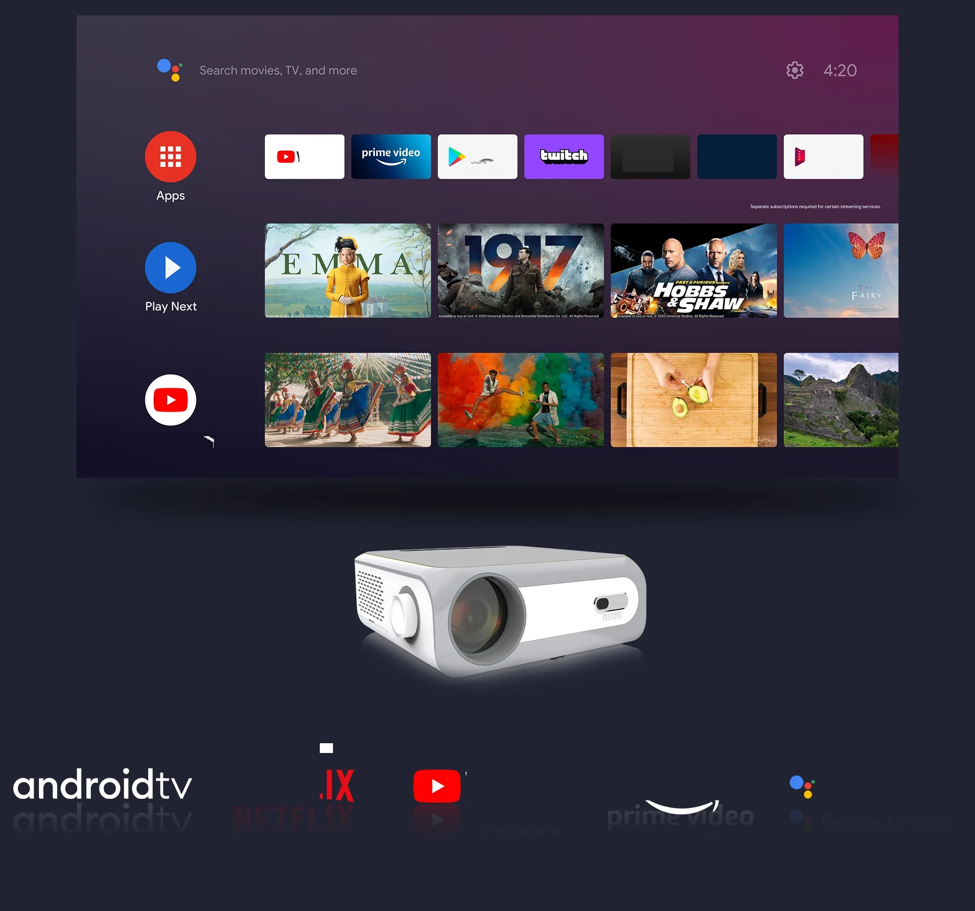 *Android TV 11 service in-side with official approval of premium apps like Netflix and Prime Video, enjoy endless TV programs, movies, sports events, etc.