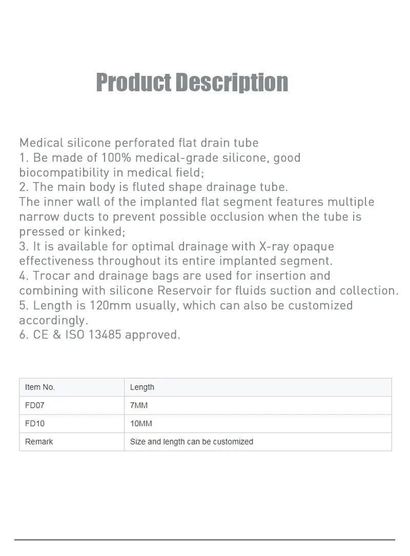 Medical Silicone Perforated Flat Drain Tube Surgical Supplies For Fluids Suction And Collection Fluted Shape Drainage Tube
