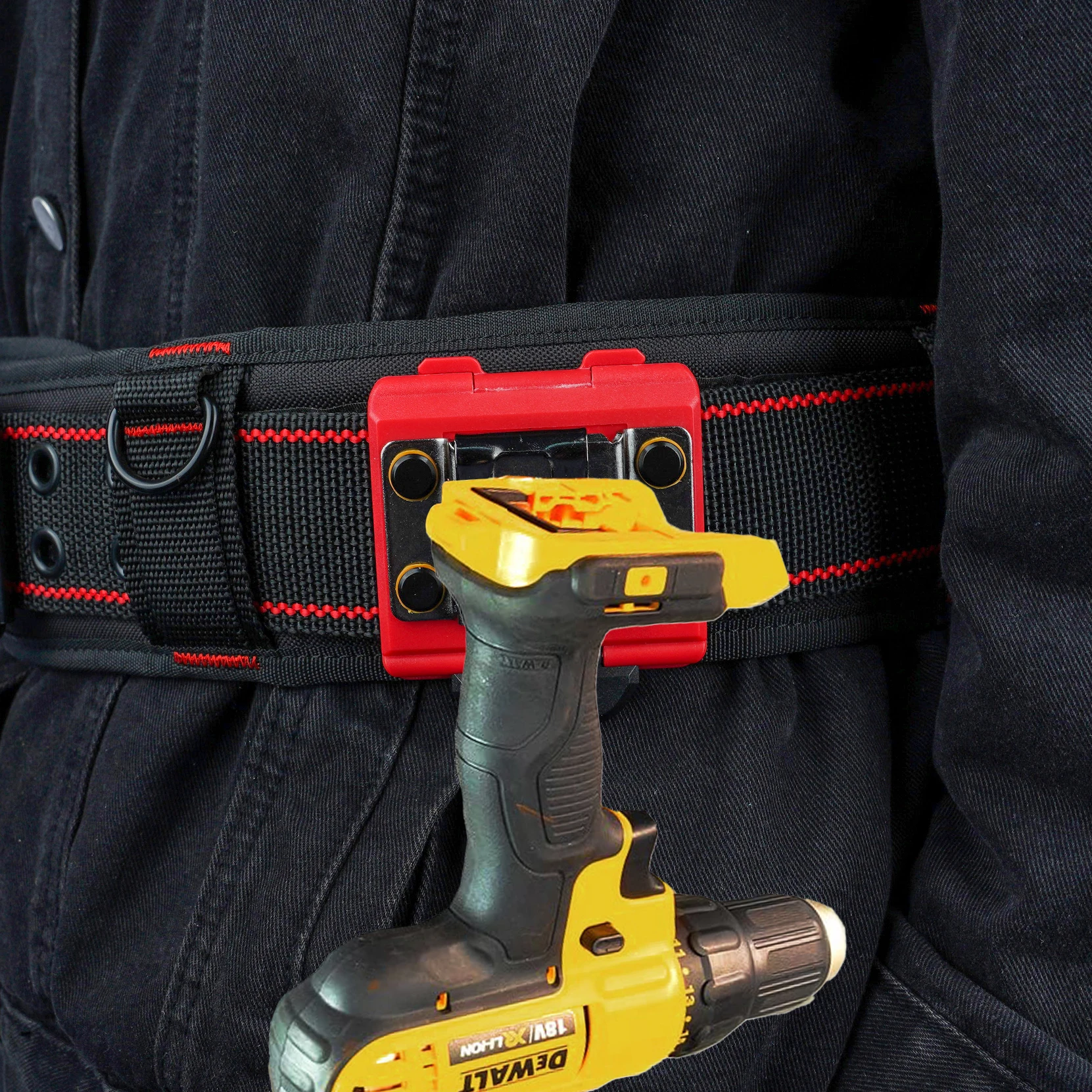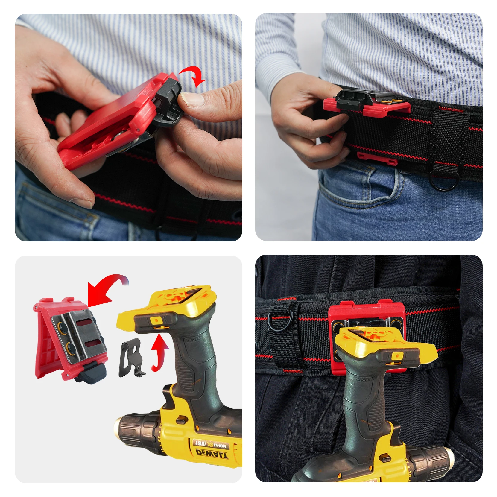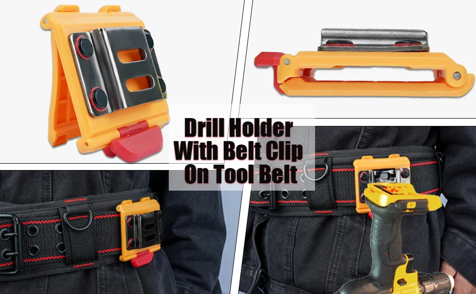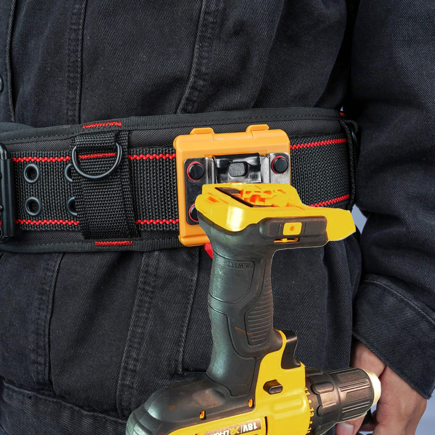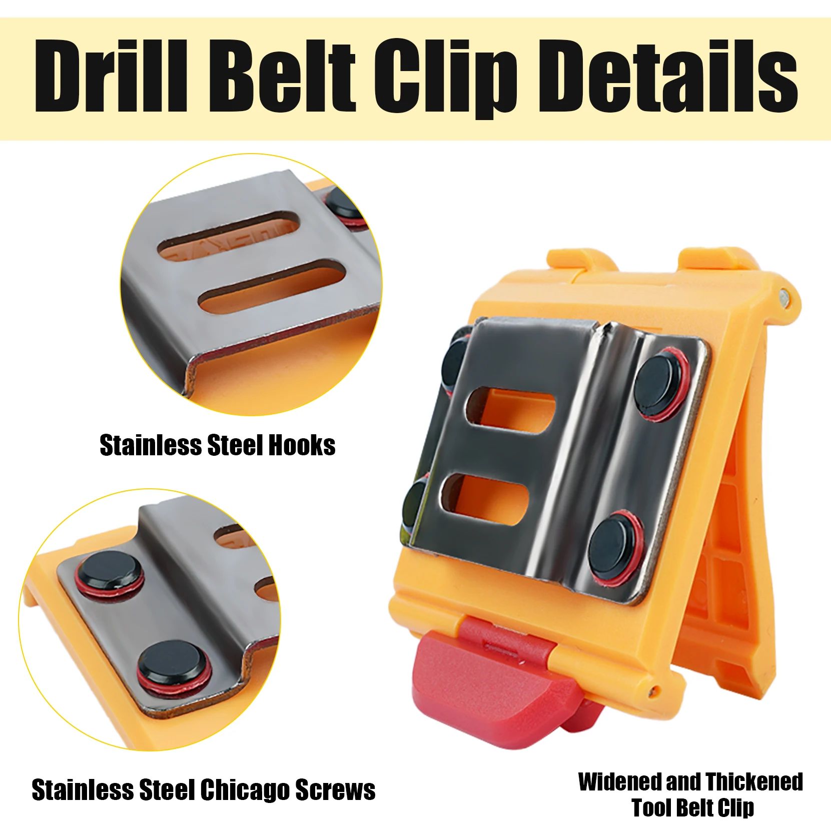 ✅【Quickly Clip on and Clip off】: One-hand place the drill belt holster on your belt for easy access to your work. can easily clip on tool belt and removed from your working belt quickly.