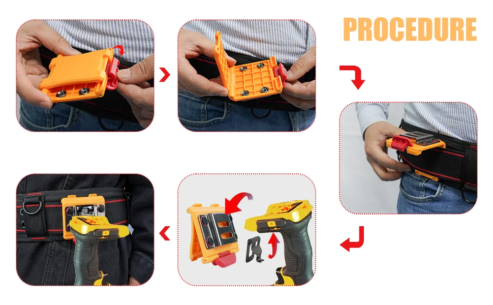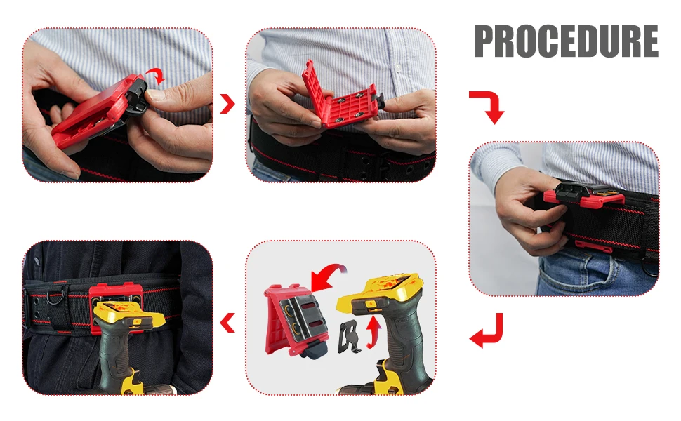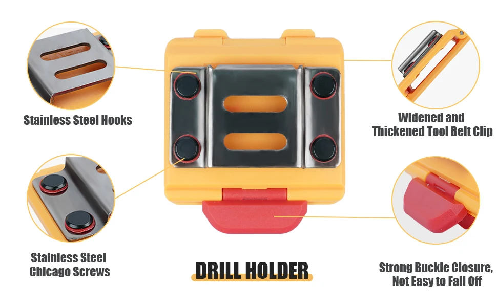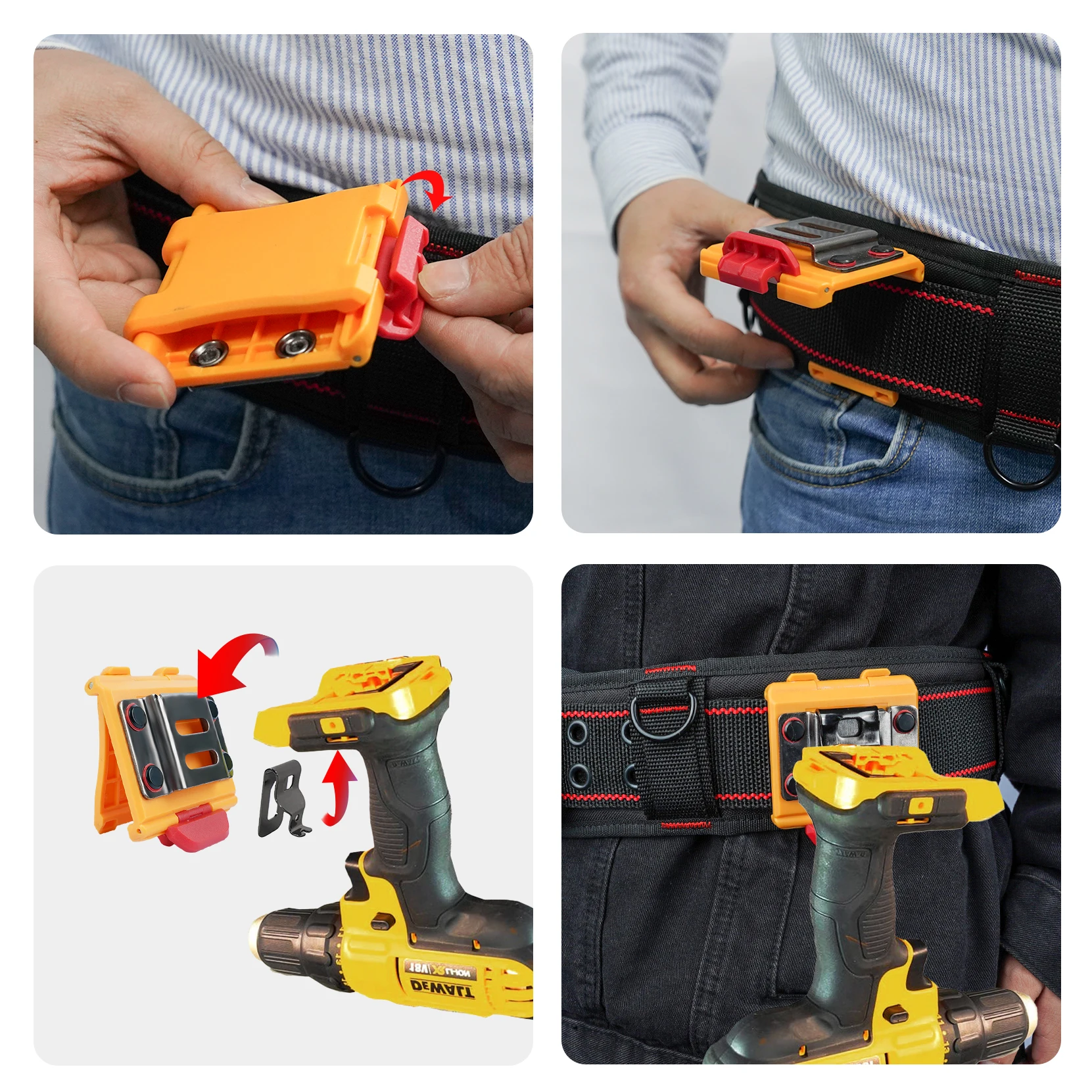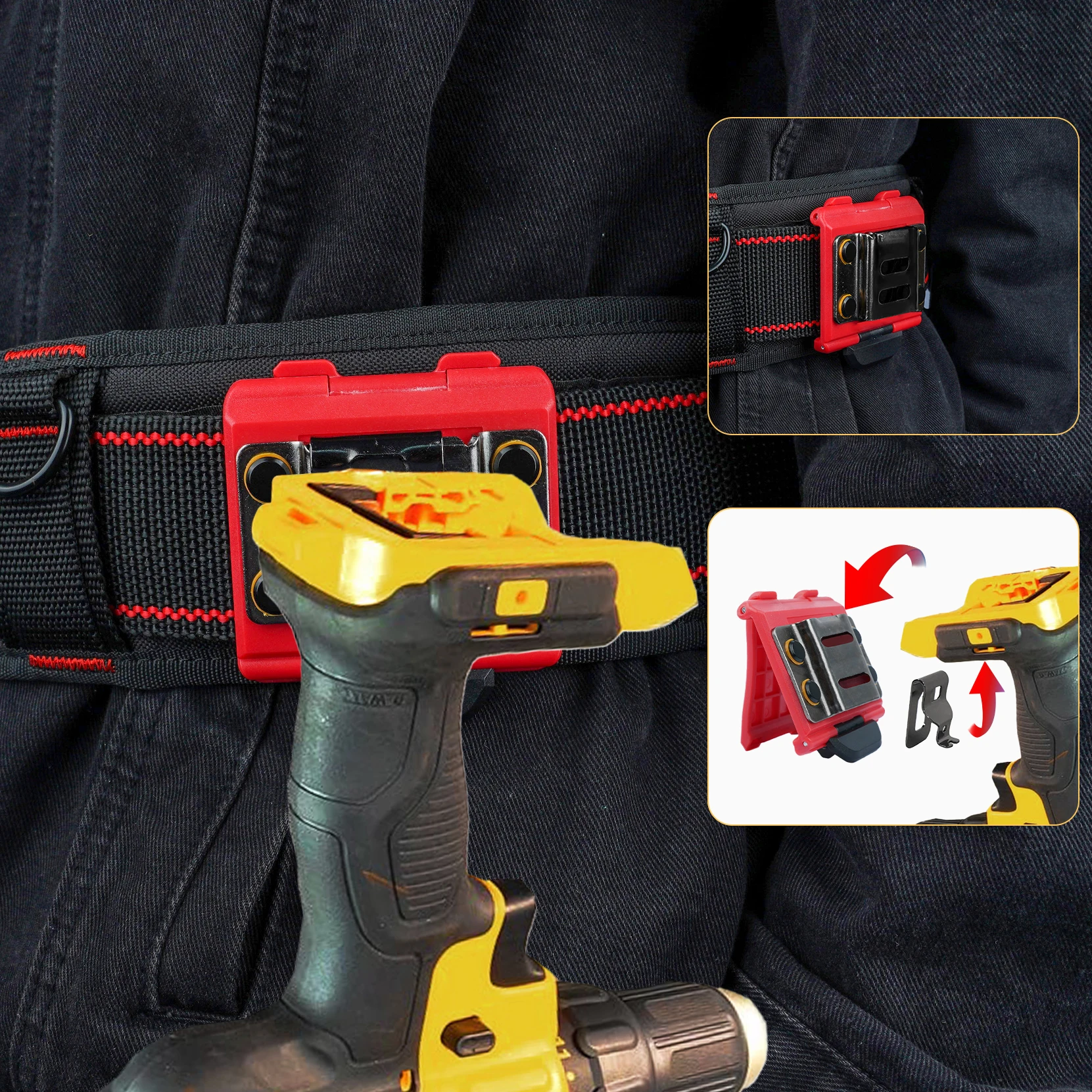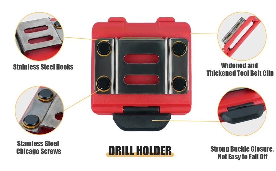 ✅【Quickly Clip on and Clip off】: One-hand place the drill belt holster on your belt for easy access to your work. can easily clip on tool belt and removed from your working belt quickly.