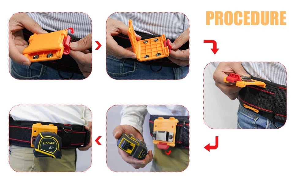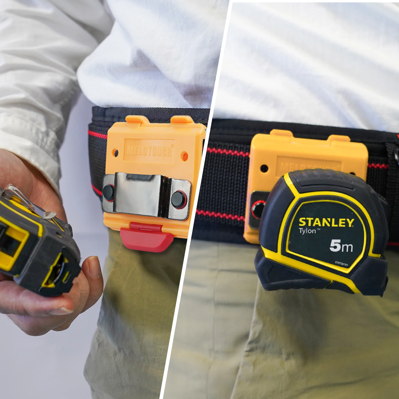 ✅【Slim, Durable and Strong】: This tool holster is compatible with regular tool belts, can hold all measuring tape with Belt Clip.