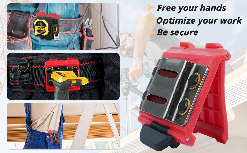 ✅【Protect Your Leather Tool Belt】: Tape Measure Holder is patent designed to free your hands. This drill holster / tape measure holder is designed to Clip tool belts with belt clip hook. Enjoy Tape measure holder for belt, free your hands.