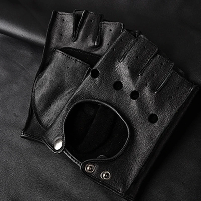 Mens Fingerless Half Finger Driving Fitness Motorcycle Cycling Goatskin NEW Men Pu Leather Gloves Mittens