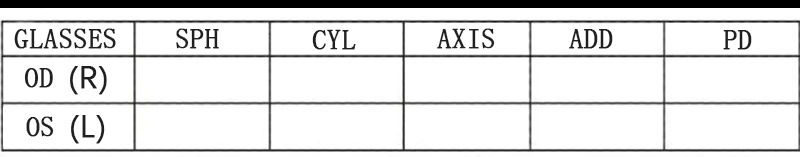 L(OS) : SPH : CYL : AXIS : ADD : PD