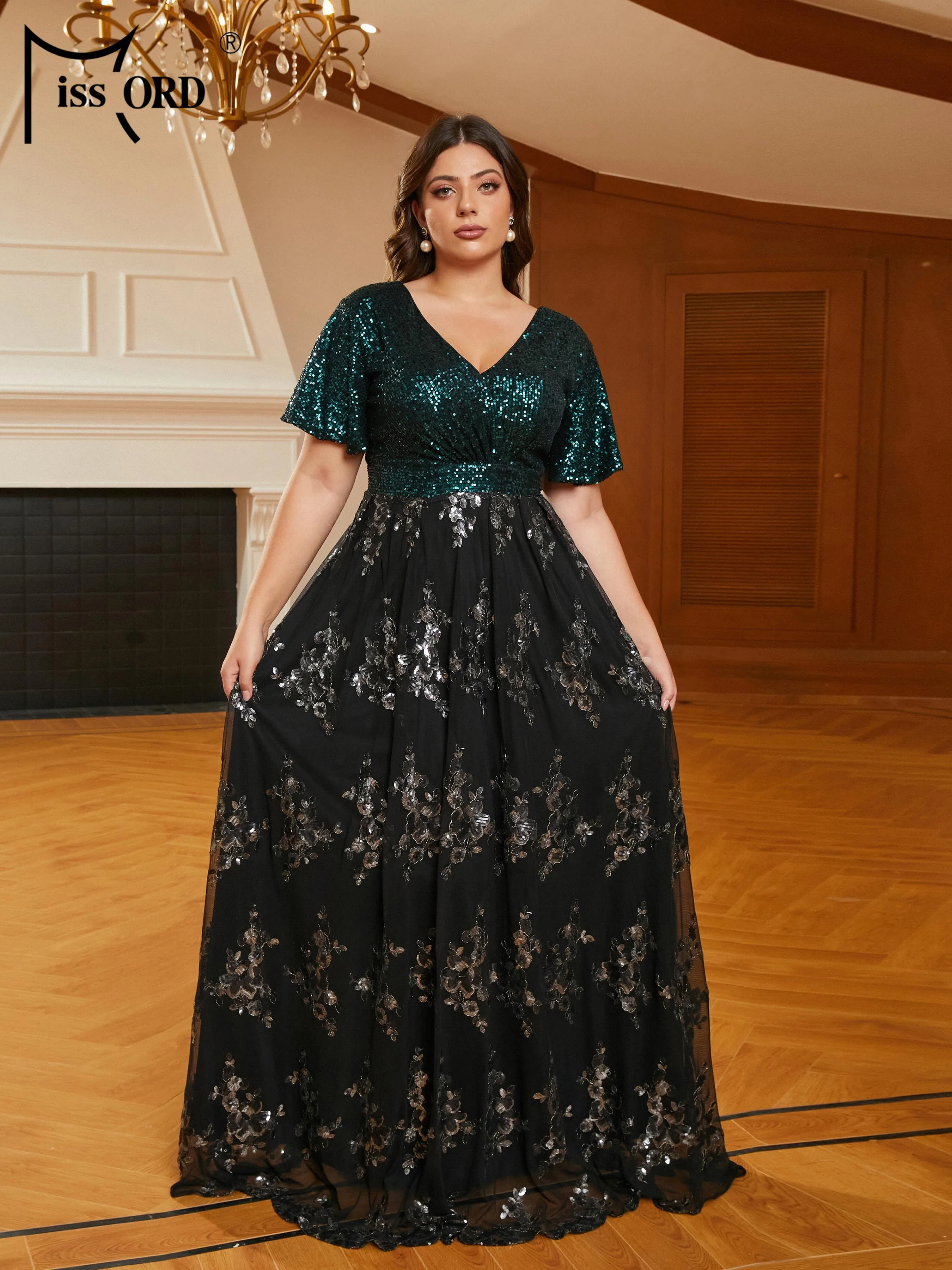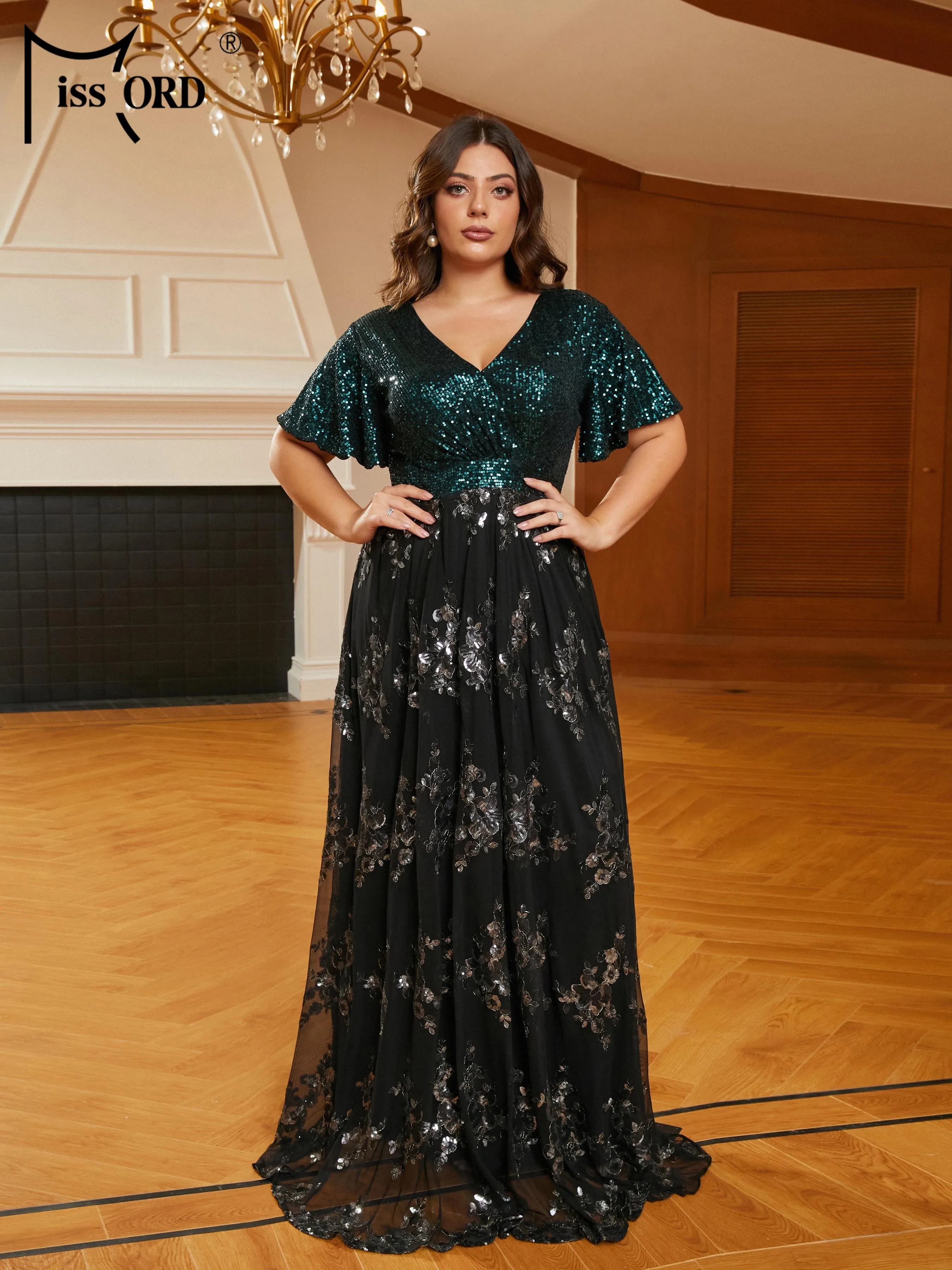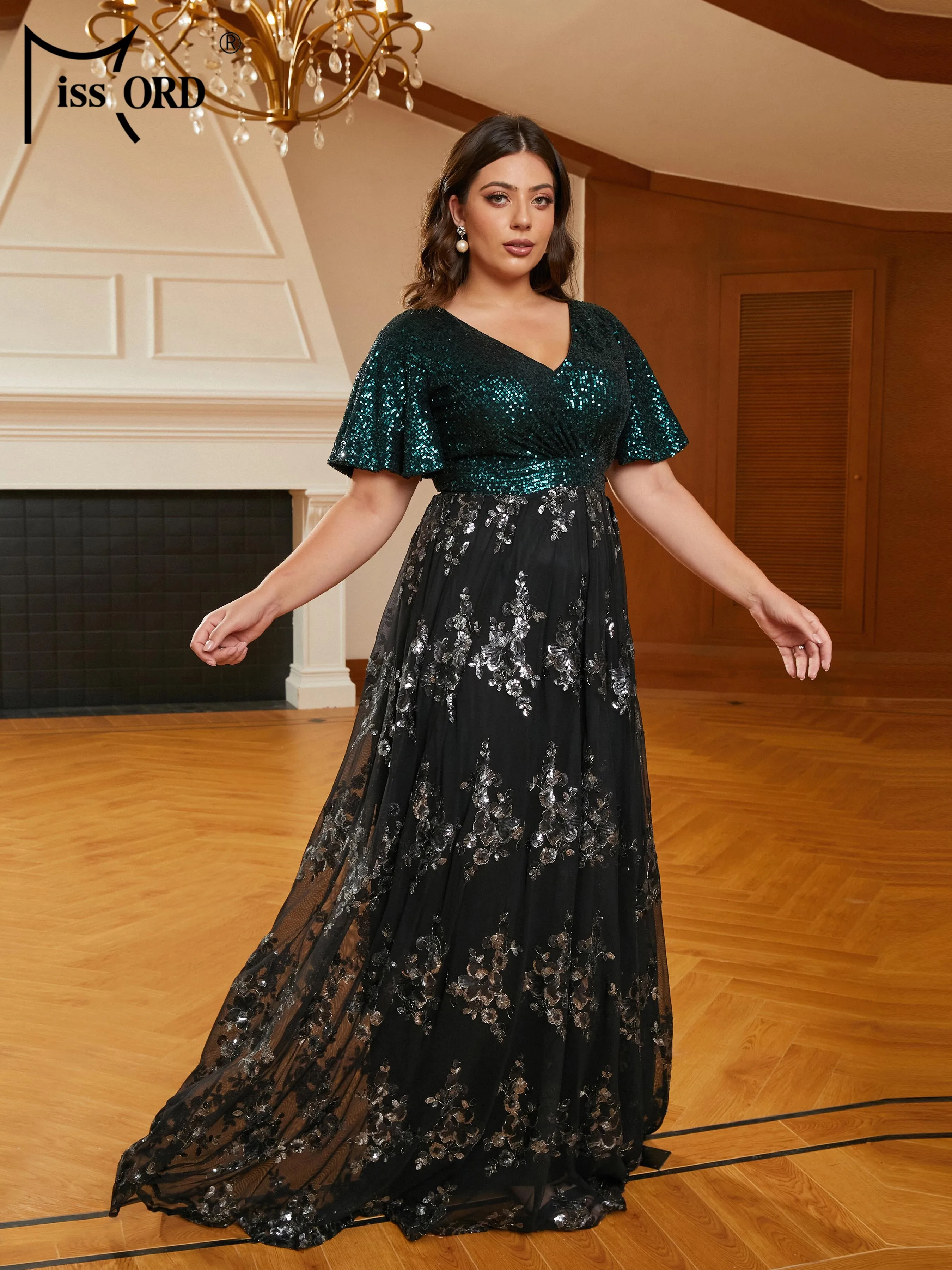 Choose Options Quick view Missord New Plus Size Women Clothing 4XL Green A Line Evening Dress Mesh Sleeves Prom Party Formal Occasion Dresses $158.31