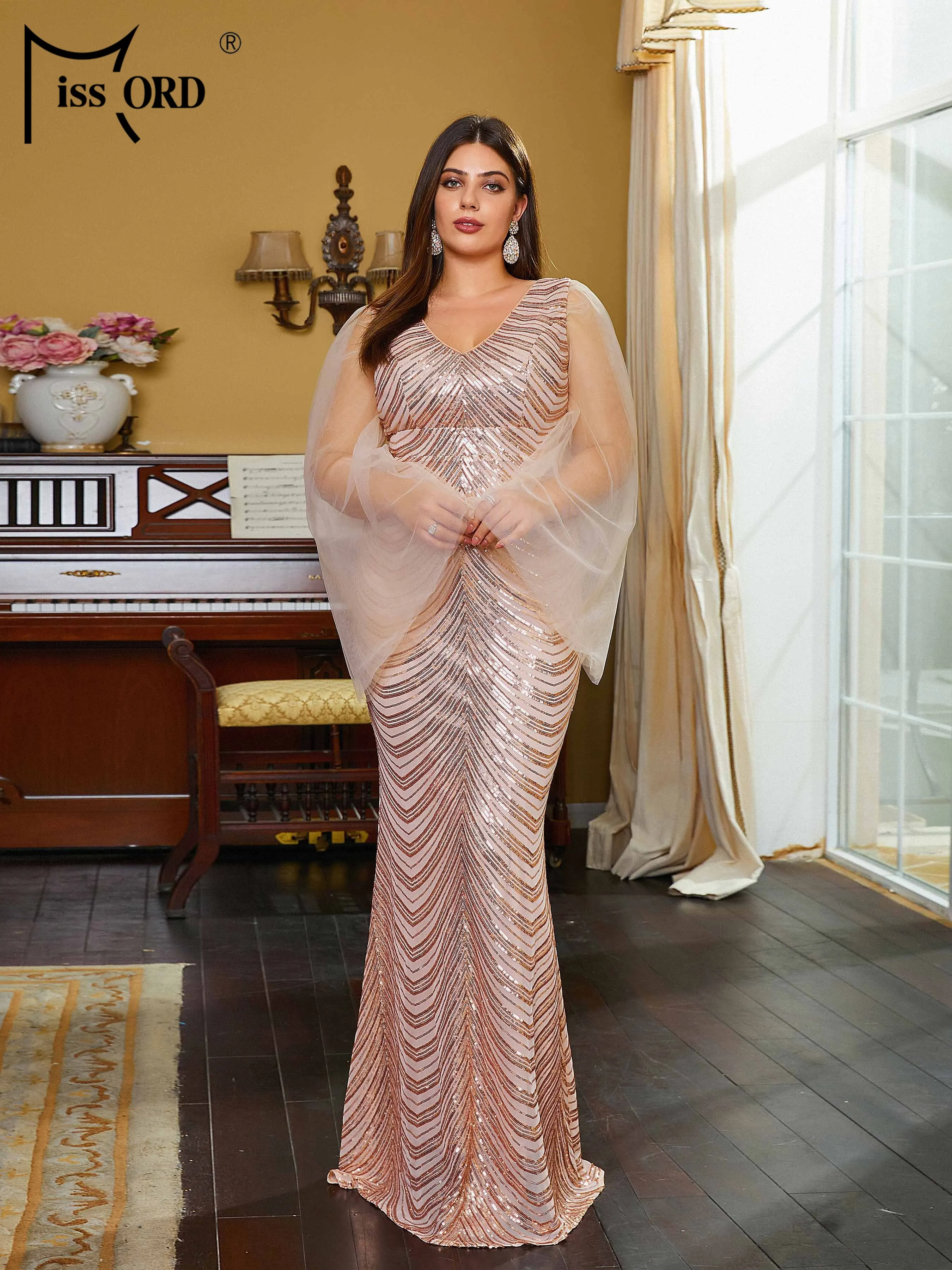 Choose Options Quick view Missord Plus Size V Neck Sequin Mesh Floor Length Evening Dress 4XL Festival Banquet Party Big Size Dreeses $715.87