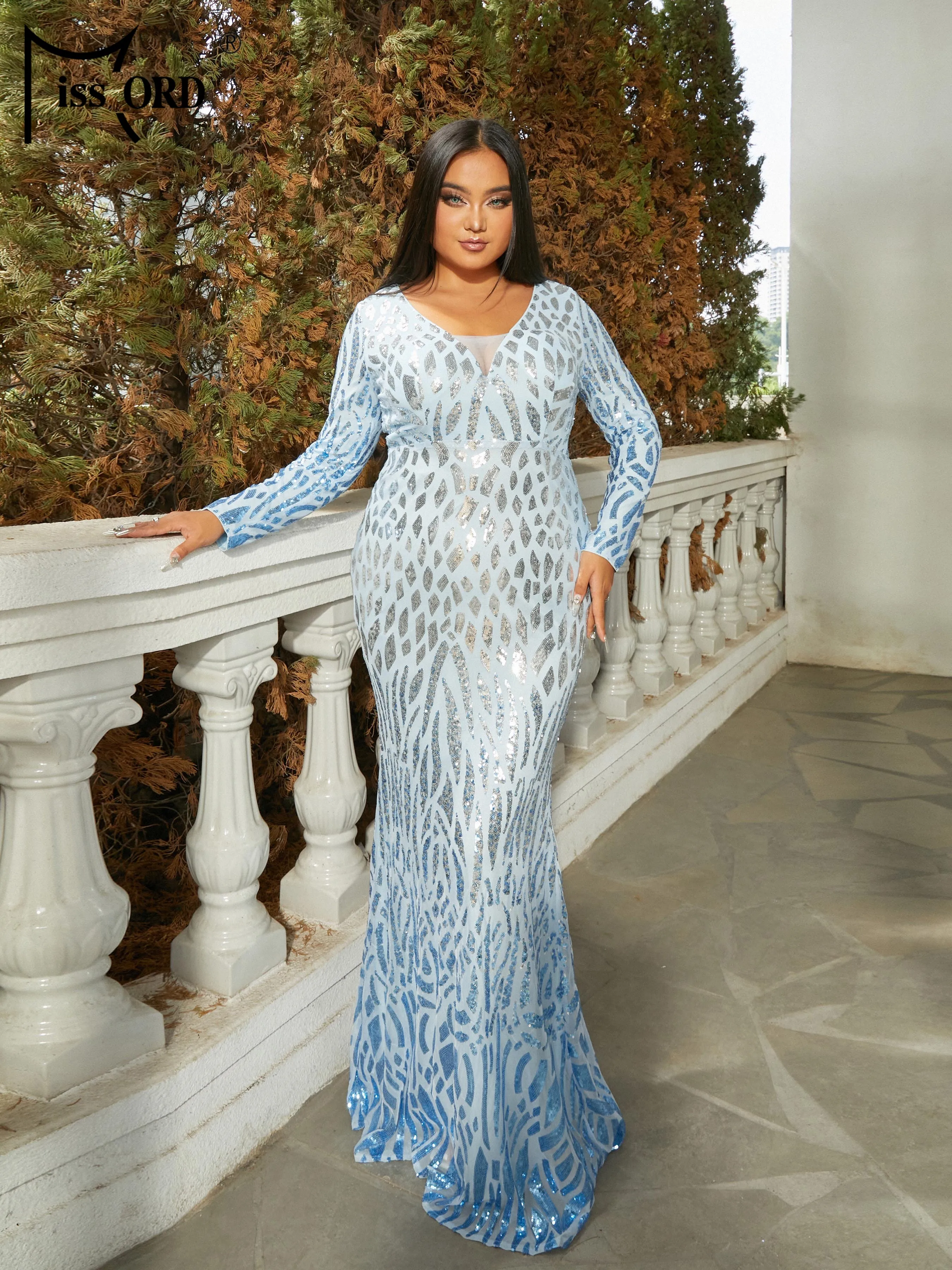Choose Options Quick view Missord New Plus Size Mermaid Sequins Grey Maxi Evening Dress Elegant Party Dresses For Women 2023 $90.57