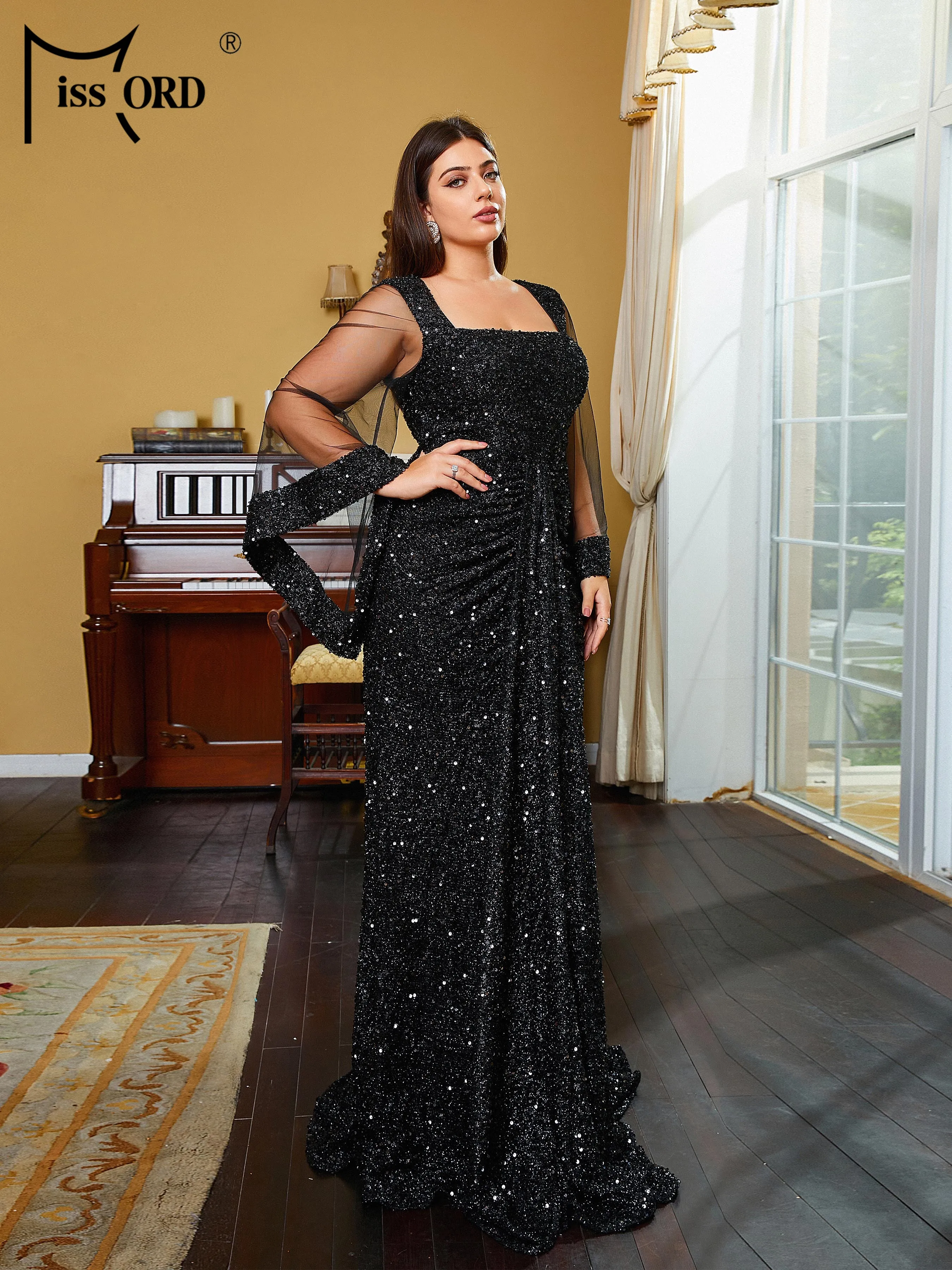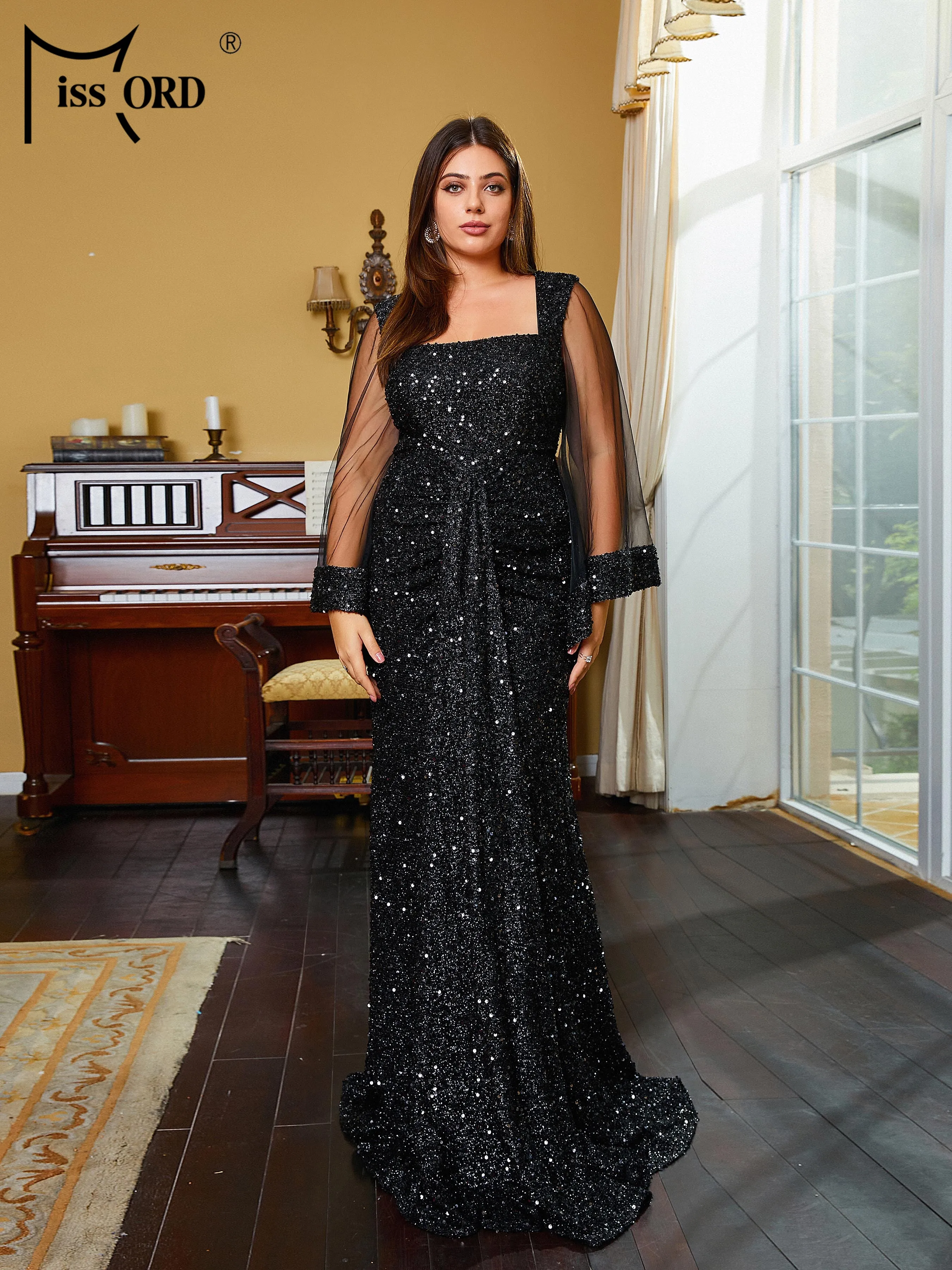 Choose Options Quick view Missord Plus Size Square Neck Long Sleeve Mermaid Black Floor Length Dress Elegant Party Dresses Women 2023 Evening Prom Dress $79.11