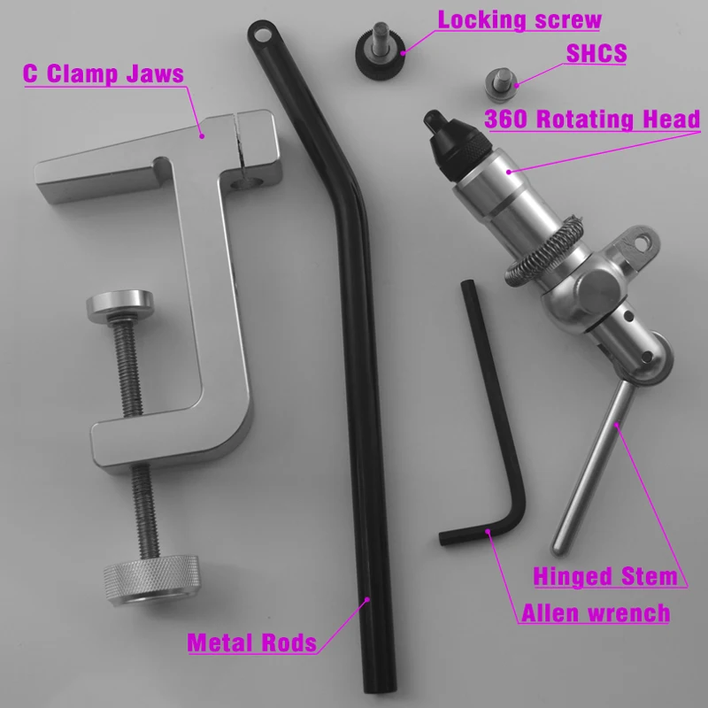 The rotating head allows tiers to turn a fly over without removing the hook from the jaws, giving them much greater versatility with this vise. C-clamp opening distance 2 3/4"(7cm)