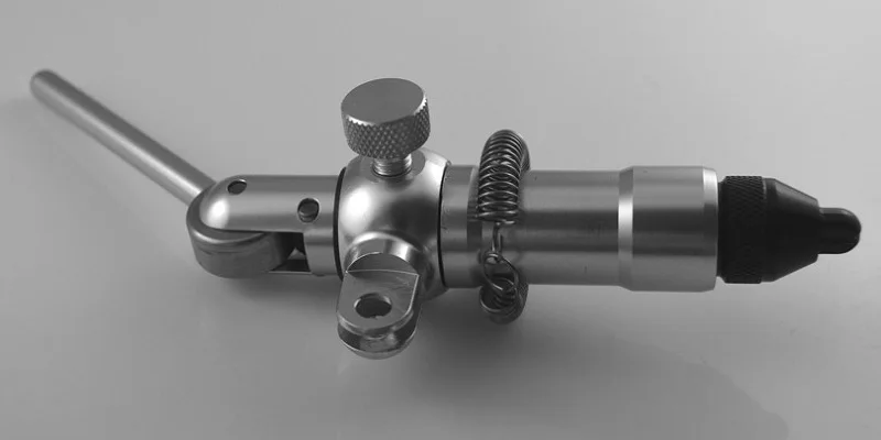 A beginner's vise that will satisfy experienced tiers as well. The Apprentice Vise has a rotary tension screw, a hinged stem, and will hold hooks Size 16 to 1/0. All anodized aluminum from Stainless and 2024 aluminum with hardened steel jaws. Improvements include a rotating head, a hinged stem,