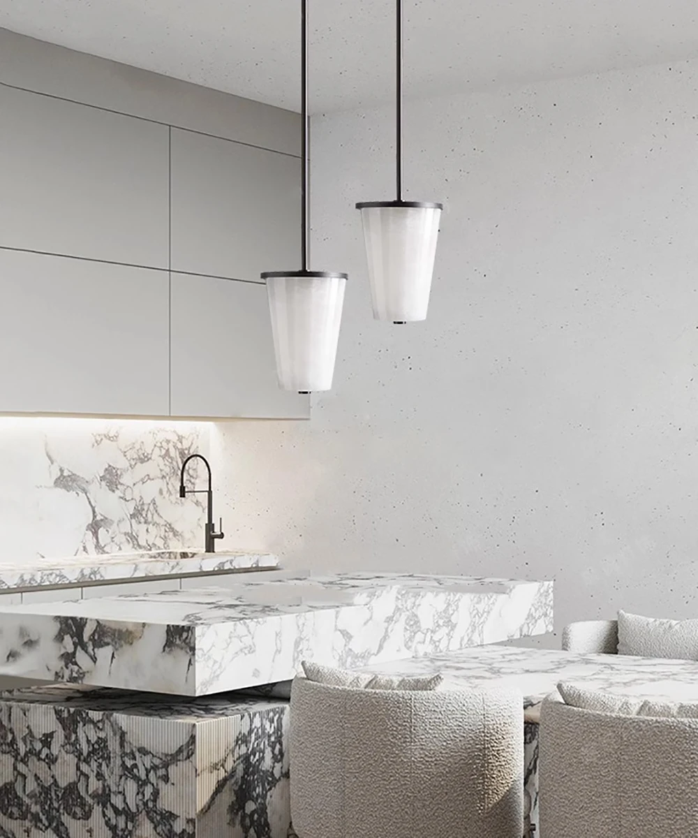 Modern 2024 Luxury Marble Pendant Lamp Dining Room All Copper Real Marble Hanging Lamps Bedside Lustres